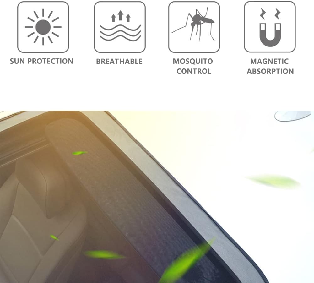 【عملي】: فتحة سقف مفتوحة، كيف ستجتاز هذا الصيف الحار بدون واقي شمس السيارة؟ يمنحك غطاء فتحة السقف الشبكي الخاص بنا راحة غير متوقعة. فهو يسمح بتدفق هواء رائع وحماية معالجة بالأشعة فوق البنفسجية، وهو أمر لا بد منه. لأي شخص وقوف السيارات أو التخييم في سيارته.