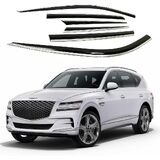 مجموعة أقنعة النافذة الواقية من المطر بشريط من AUTOCLOVER مكونة من 6 قطع لسيارة Genesis GV80 2021 2022 2023 2024 / عاكسات النوافذ، ظلال فتحات التهوية خارج القناة (كروم)