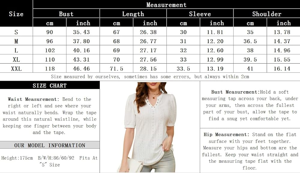 ❤المميزات: تتميز قمصاننا النسائية بتصميم عروة فريد لضمان أداء مسامي، ورقبة على شكل حرف V مثيرة لتجعلك أكثر سحرًا، وأكمام منتفخة مع أساور قابلة للتمدد لتجعلك جميلة، وحلقات معدنية رقيقة مرصعة يدويًا لإضافة لمسة من الموضة.