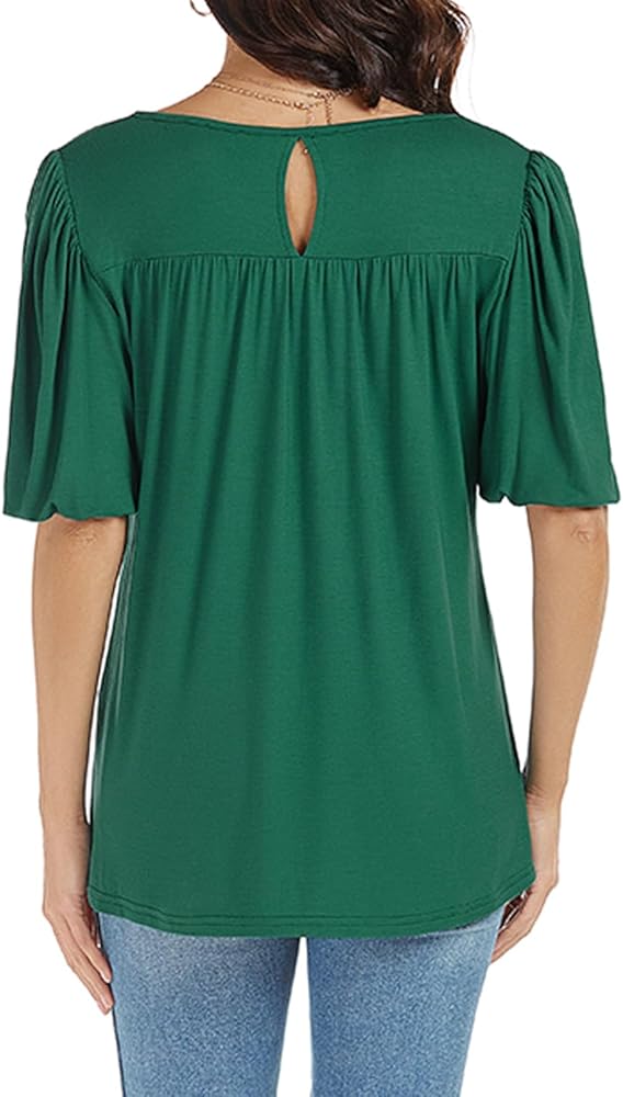 • رقبة دائرية، أكمام منتفخة، أكمام قصيرة بالون، بدون ظهر، حاشية منحنية، لون ثابت، قمصان مطوية، قمصان تونيك للنساء لارتدائها مع السراويل الضيقة