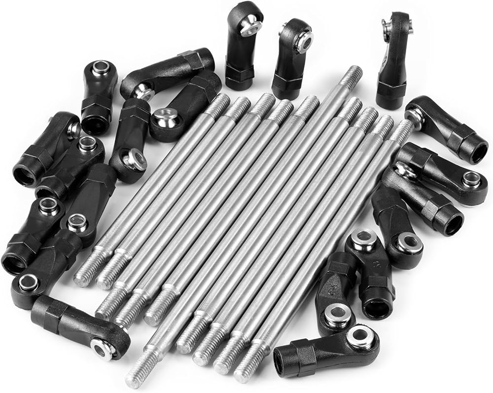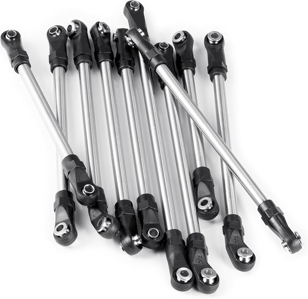 مجموعة ربط الهيكل RCHUBAM SCX10 من الفولاذ المقاوم للصدأ مجموعة نهاية قضيب وصلة الزاحف RC متوافقة مع أجزاء ترقية قاعدة عجلات السيارة الزاحفة 1/10 SCX10 AXI90075 UMG10 II RC