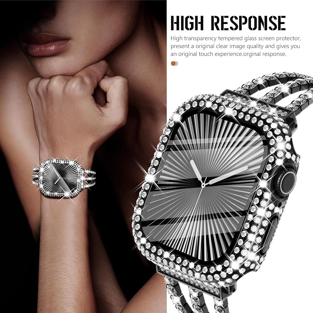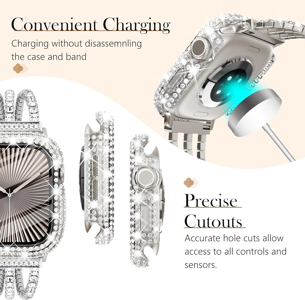 يتألق إلى أقصى حد كل يوم مع أكثر من 200 بلورة شفافة، مجموعة ممتص الصدمات لساعة Apple هذه مع 5 صفوف من أحجار الزركونيا المكعبة اللامعة، دع المزيد من التألق في تصميم خزانة ملابسك، تصميم يستحق أن يسرق الأضواء في جميع الأوقات.