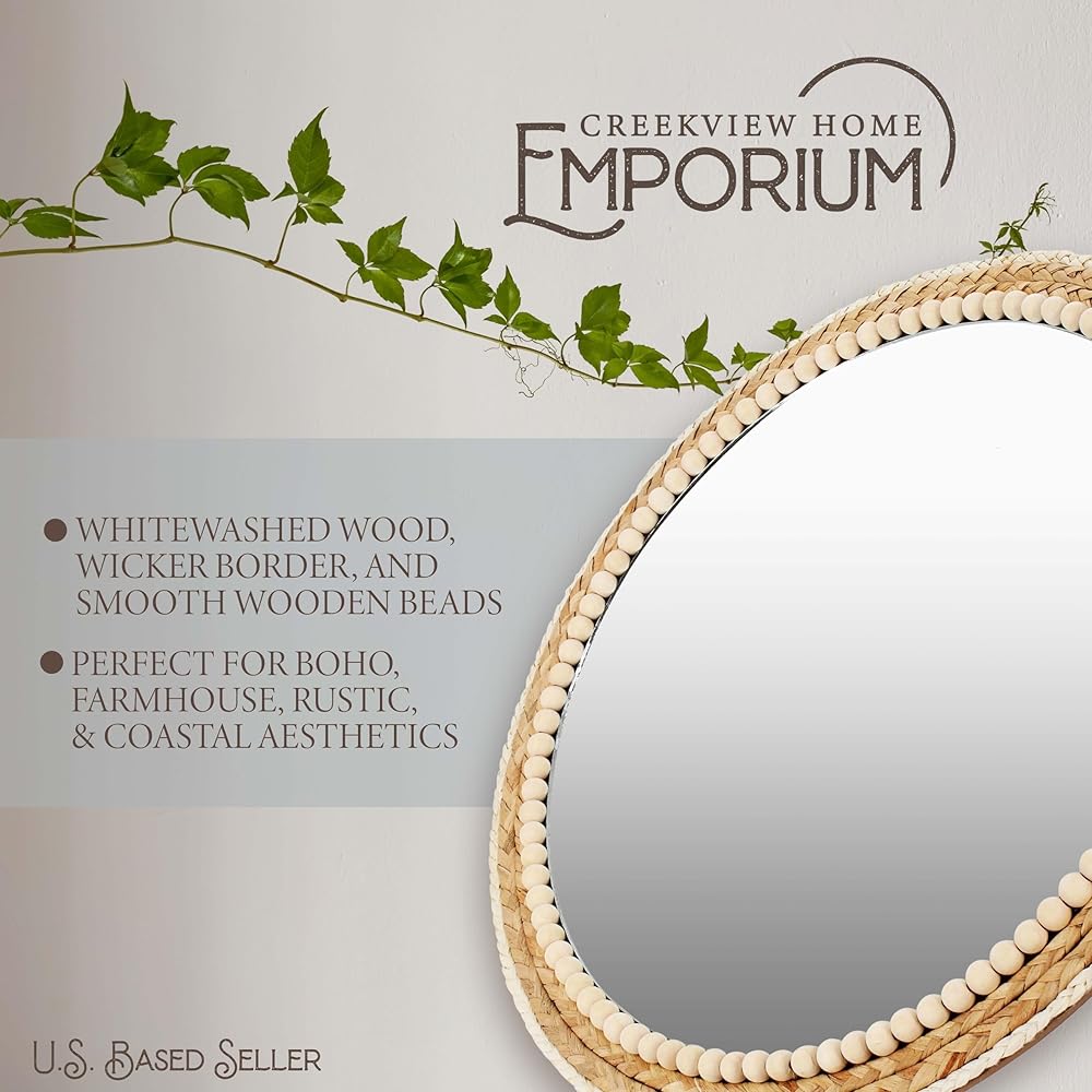 - [تفاصيل دقيقة]: مصنوع من الروطان المنسوج للحصول على حدود خوص وخرز خشبي ناعم مغسول باللون الأبيض لإضافة مثالية لأي غرفة في منزلك