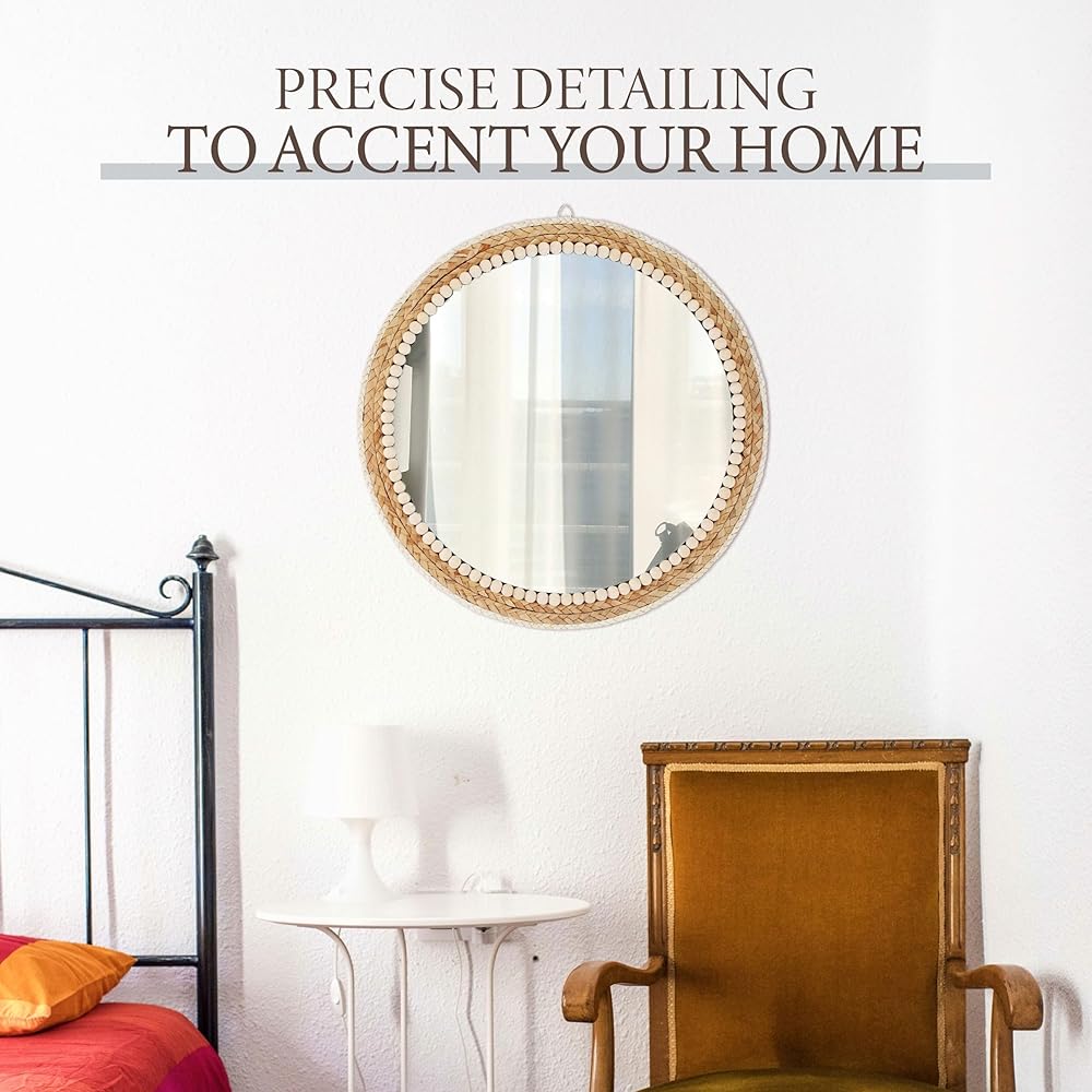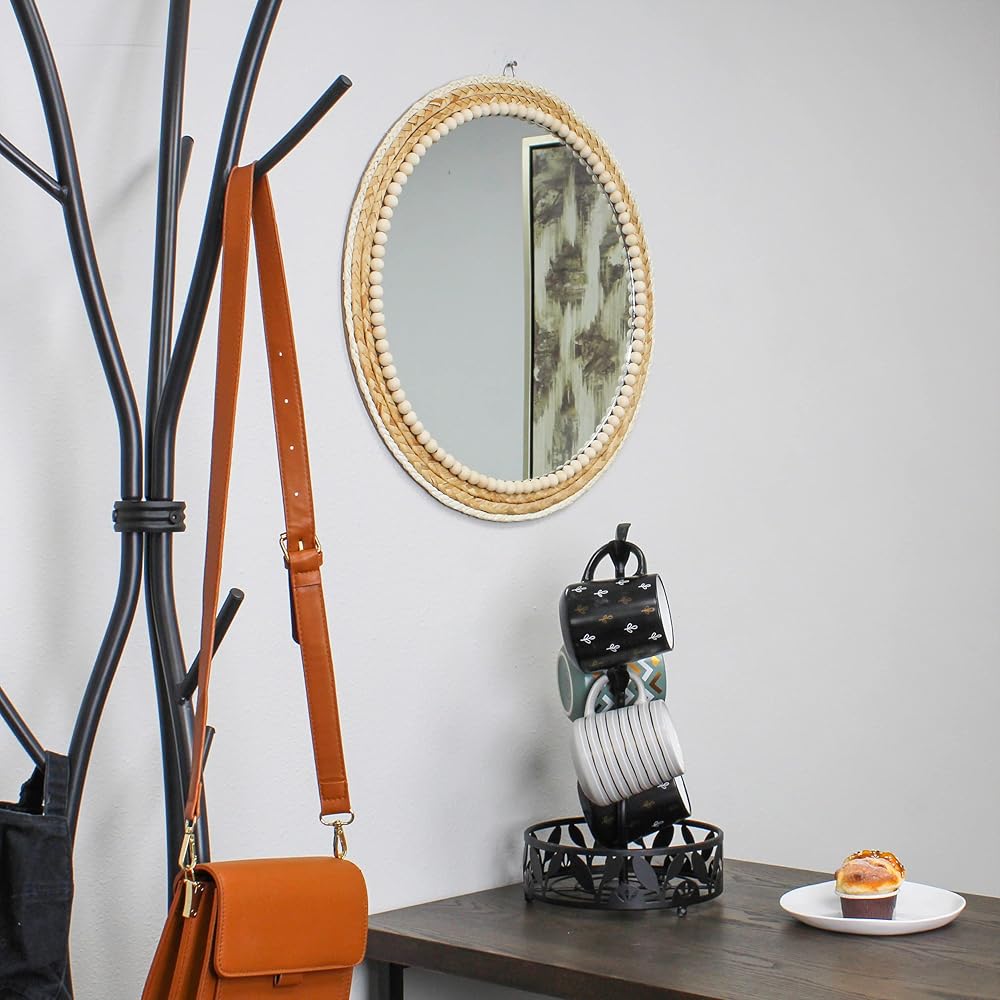 - [تناسب جميع أنماط الديكور]: مع الخشب الأبيض وتفاصيل الخوص، تناسب هذه المرآة الدائرية الخشبية أنماط الديكور البوهيمي والمزرعة والريفي والساحلي.