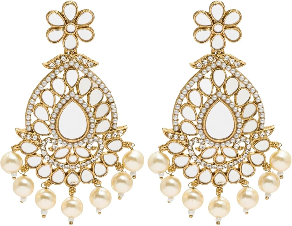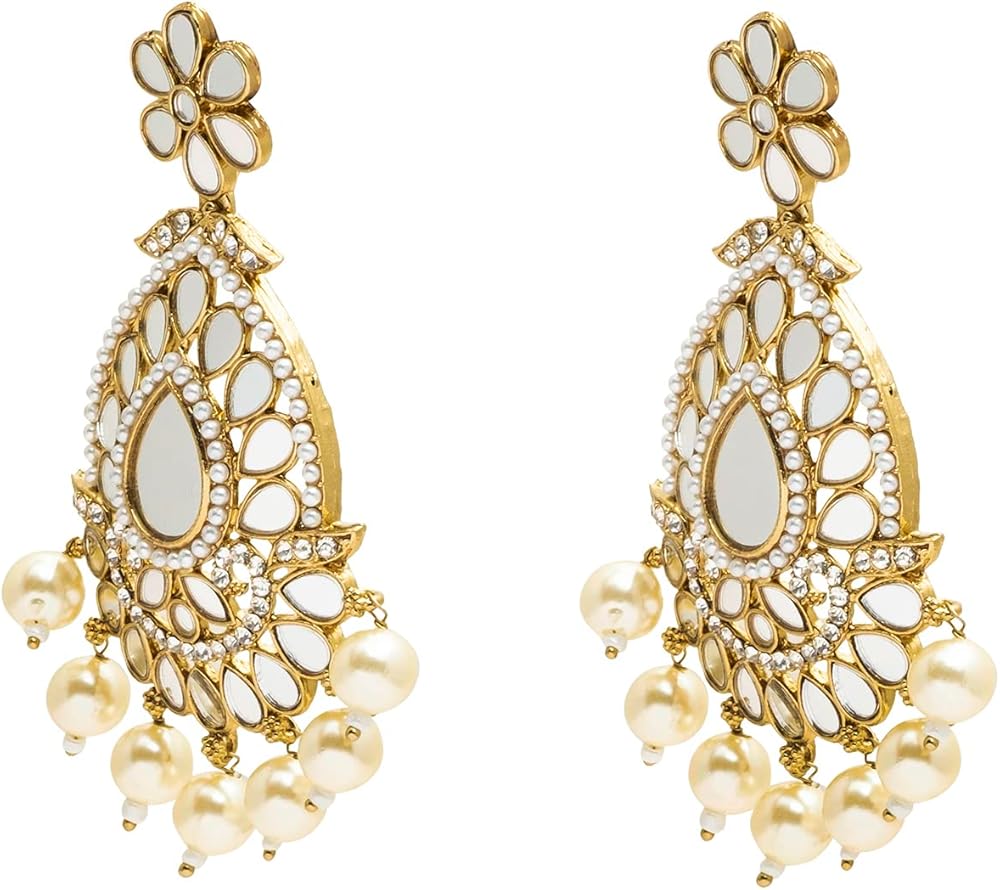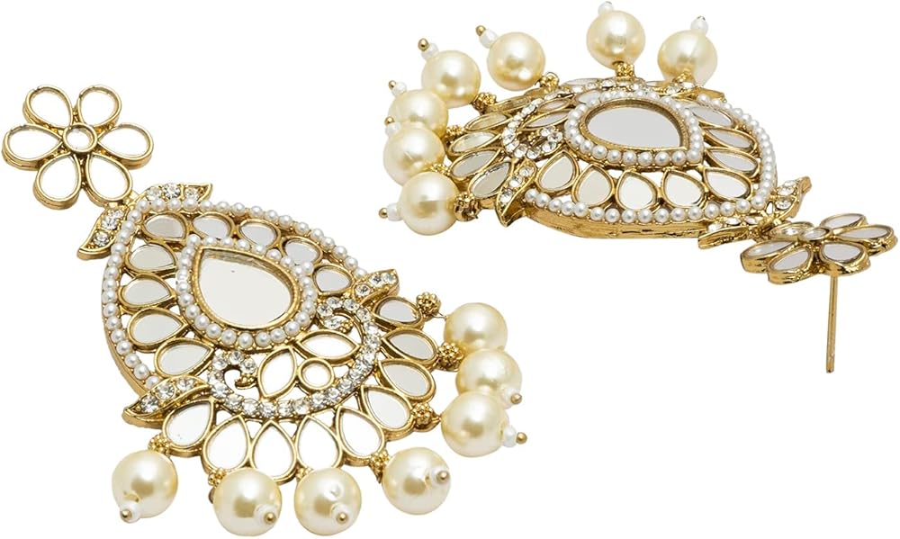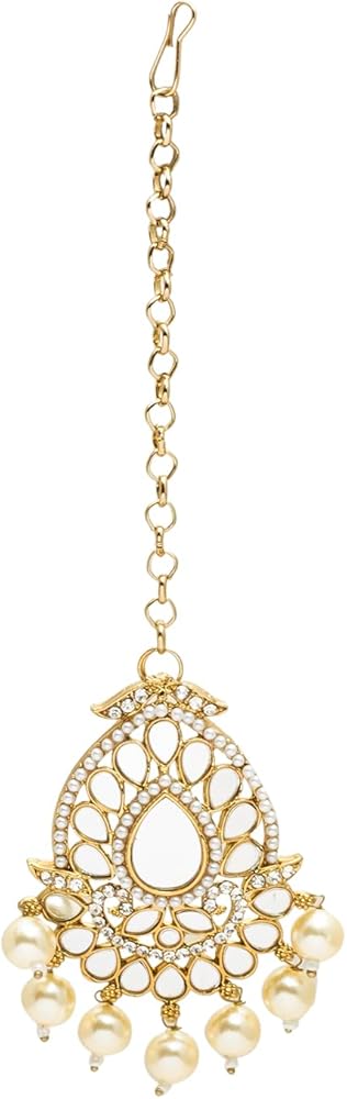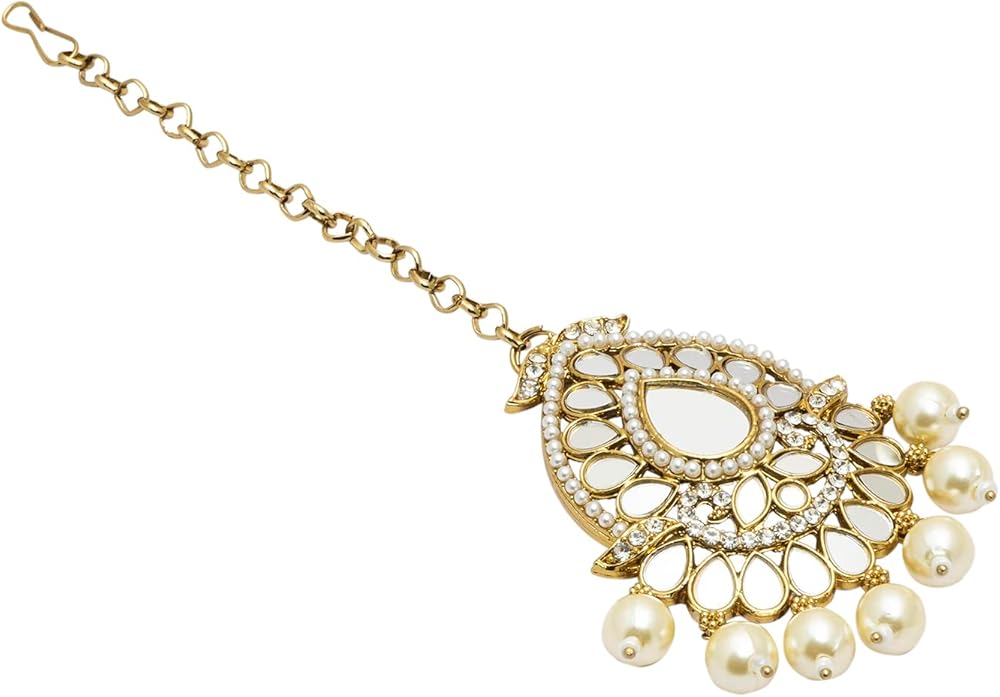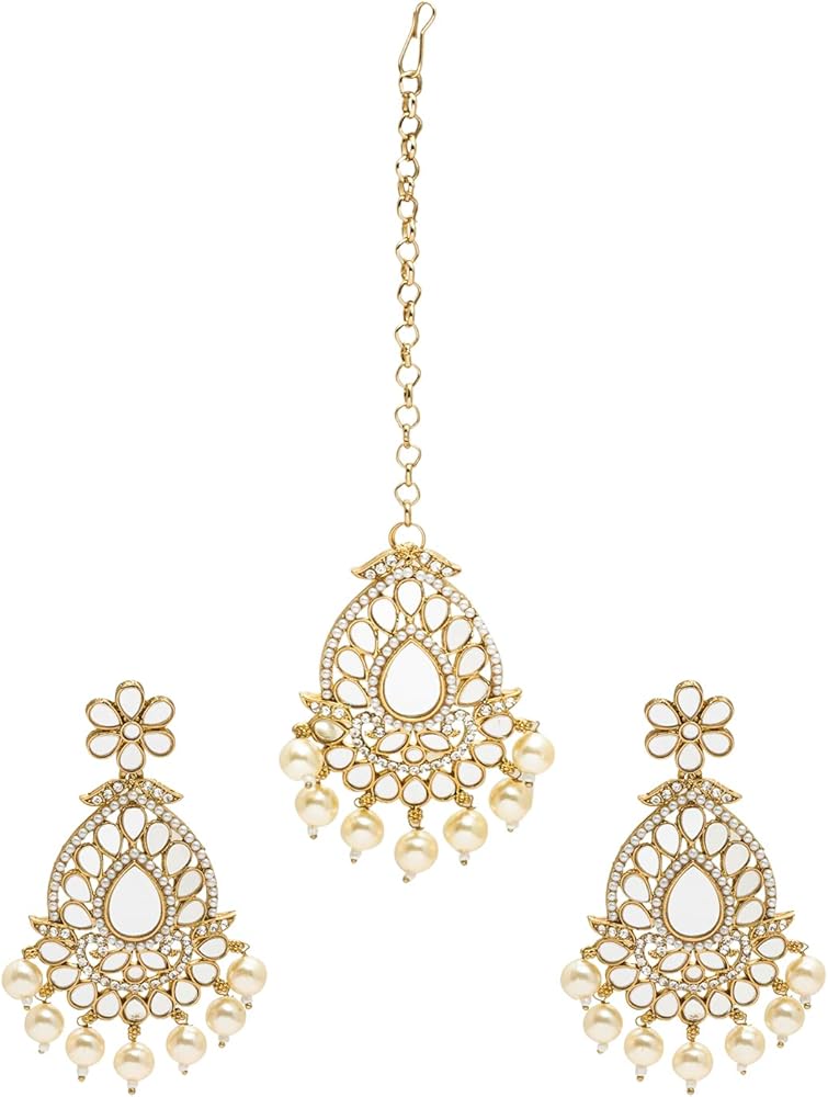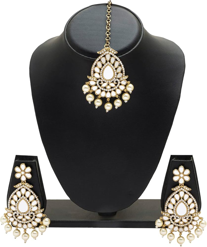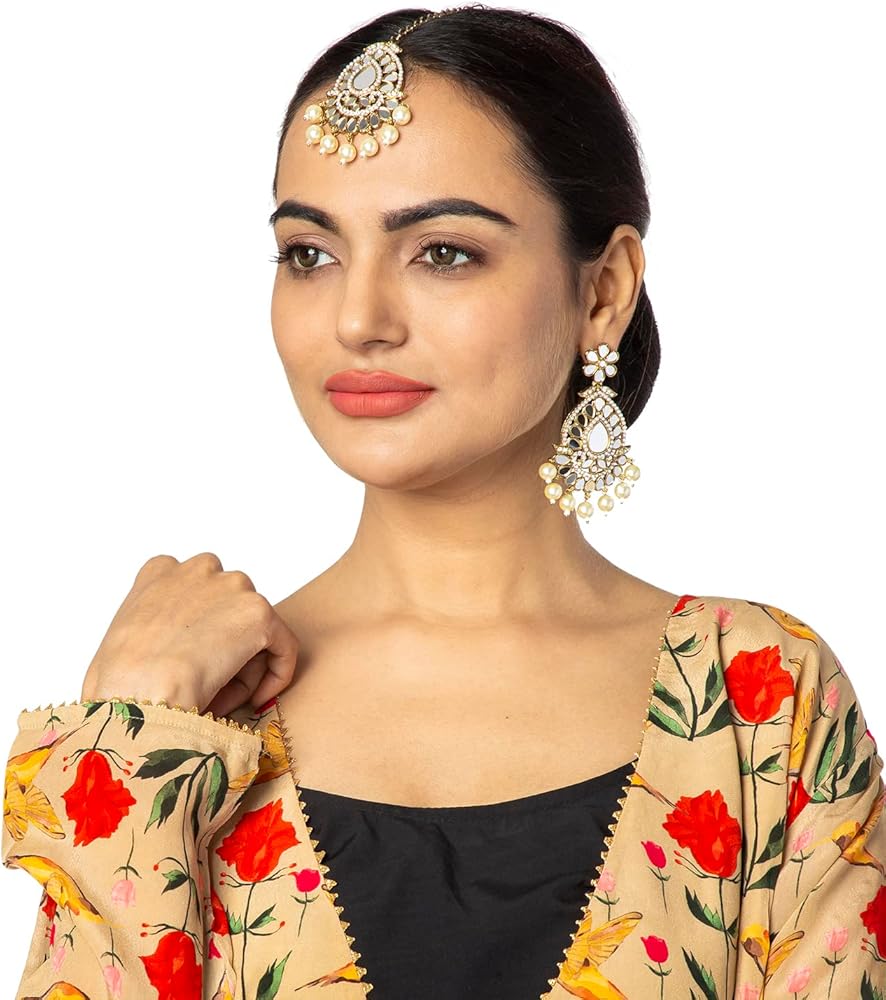 • أقراط بتصميم أزياء كريستال كوندان خفيفة الوزن ومجموعة كومبو ماانجتيكا للنساء مع اللؤلؤ والمعلقة والكوندان والخرز