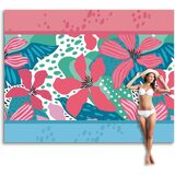 بطانية شاطئ ناعمة مضاءة بنور الشمس مقاس 106 بوصة × 81 بوصة مقاومة للرمل، سجادة شاطئ خالية من الرمال مع جيب زاوية وحقيبة شبكية لحفلات الشاطئ والسفر والتخييم ومهرجان الموسيقى في الهواء الطلق، أزرق وردي