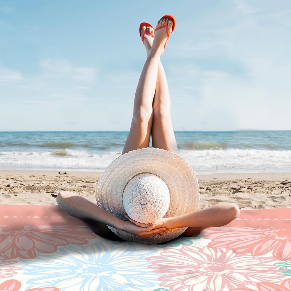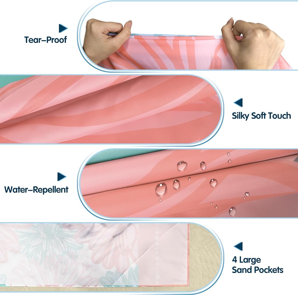 [مادة أفضل، صديقة للبشرة] - بطانية الشاطئ الخاصة بنا مصنوعة من نسيج ناعم رائع تضمن الاسترخاء المريح دون تهيج الجلد. سهلة التنظيف، ببساطة قم بإزالة الرمال دون عناء! مصنوع من أقمشة مقاومة للرمل والماء وعديمة الرائحة، مما يلغي الحاجة إلى التجفيف بعد زيارة الشاطئ.