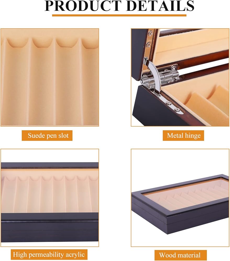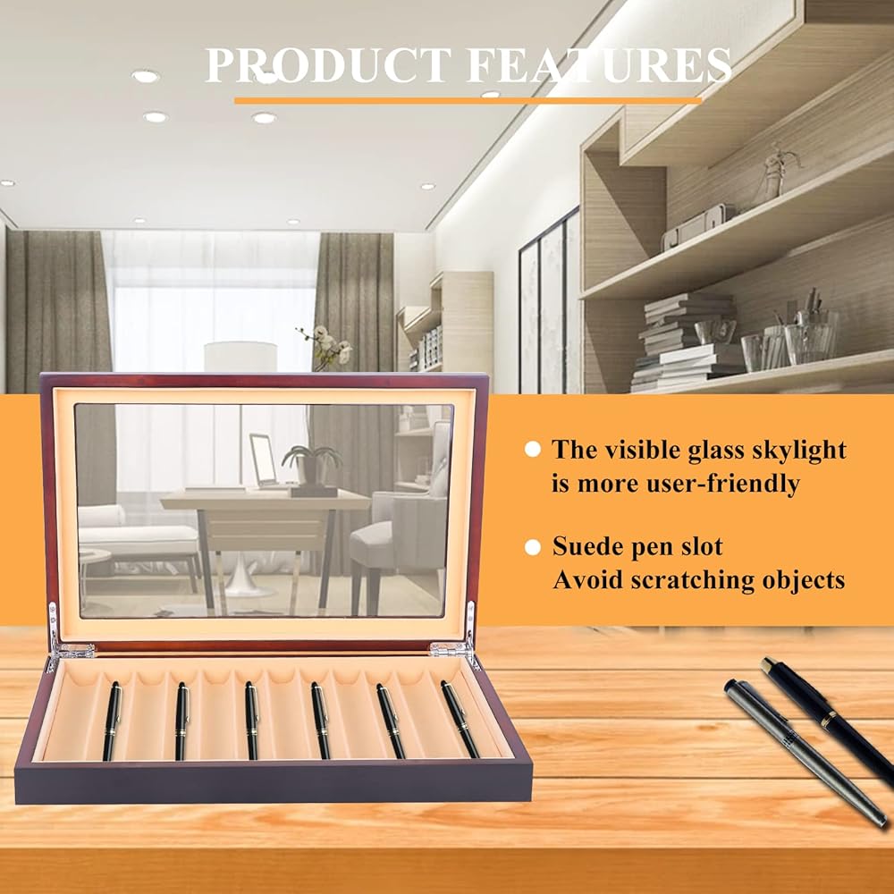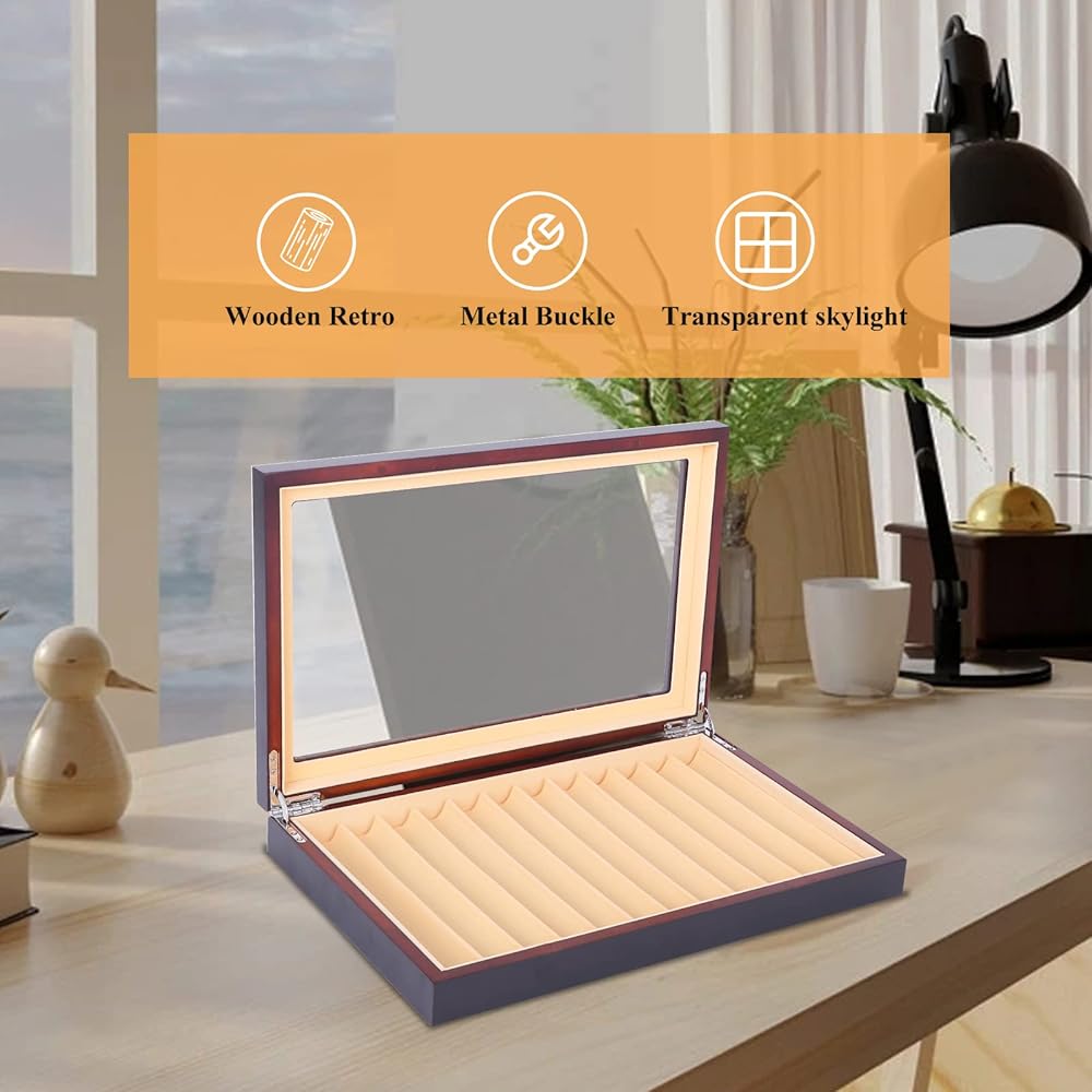 - [السعة]: تتميز حافظة الأقلام وصندوق العرض بتصميم واسع وعملي، ويمكن تخزين وتنظيم ما يصل إلى 12 قلمًا.