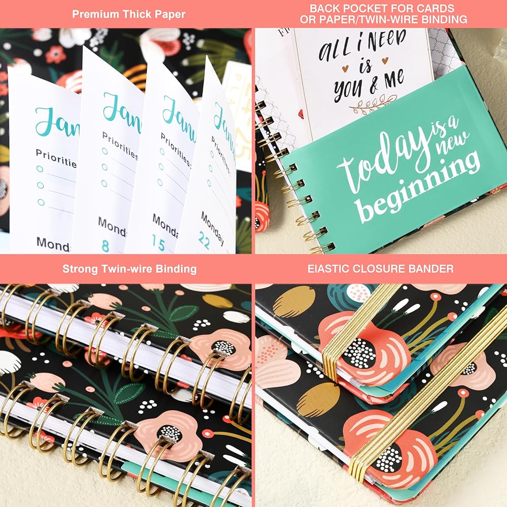 • قوي ومتين - مخطط بورق أبيض عالي الجودة لكتابة نظيفة وتقليل الحبر من خلاله. وهذا المخطط التقويمي 2024-2025 المزود بسلك مزدوج ذهبي قوي يسمح بقلب الصفحات بسلاسة ووضعها بشكل مسطح.