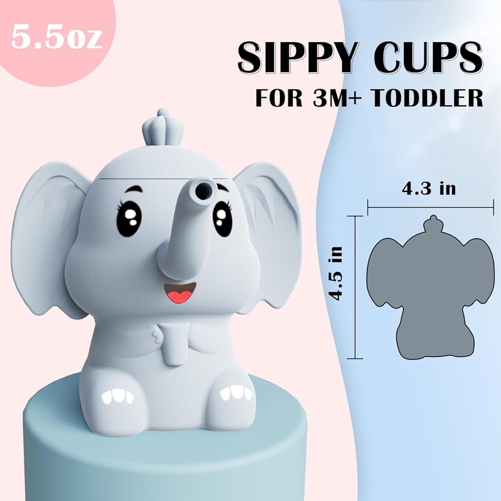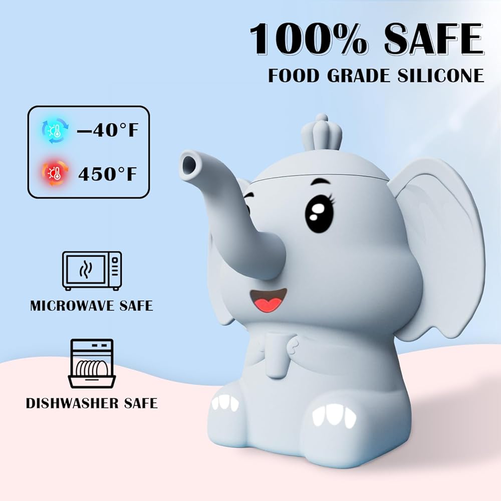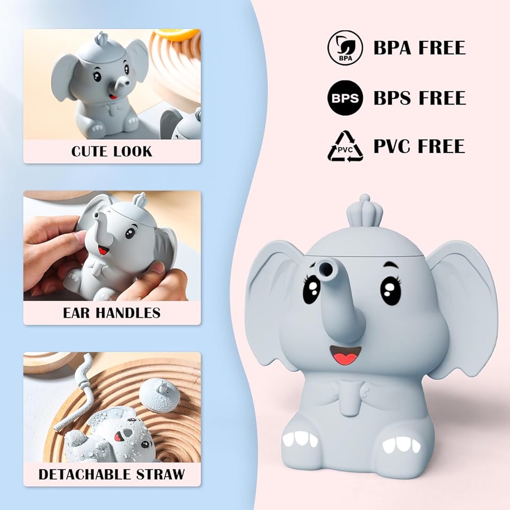 [شكل لطيف يجذب الأطفال] تم تصميم هذا الكوب المصنوع من السيليكون على شكل فيل للأطفال بعمر 6 أشهر فما فوق. المظهر اللطيف يجذب انتباه الطفل ويجعل شرب الماء أكثر إثارة للاهتمام.