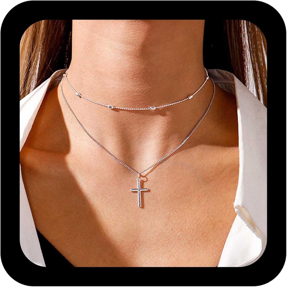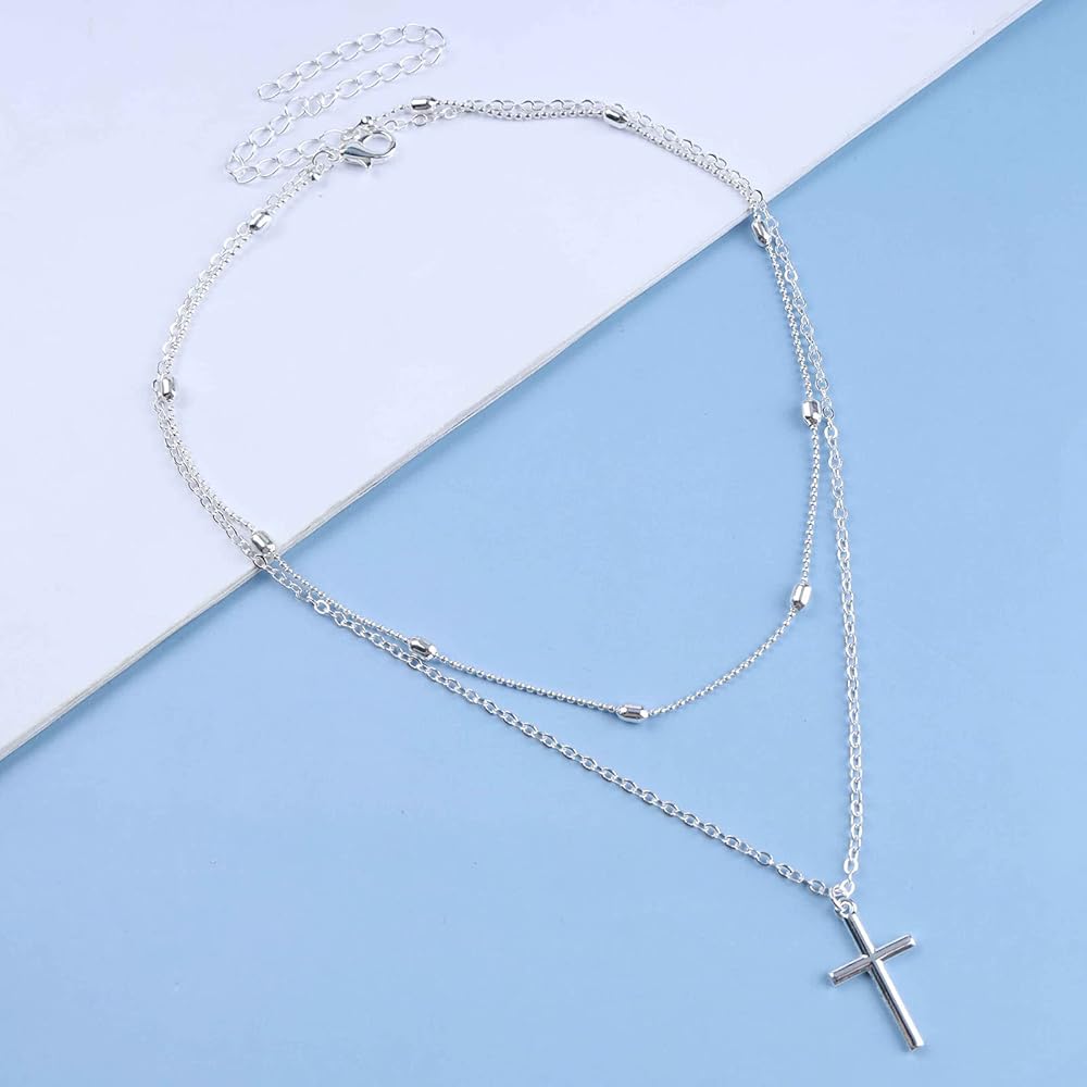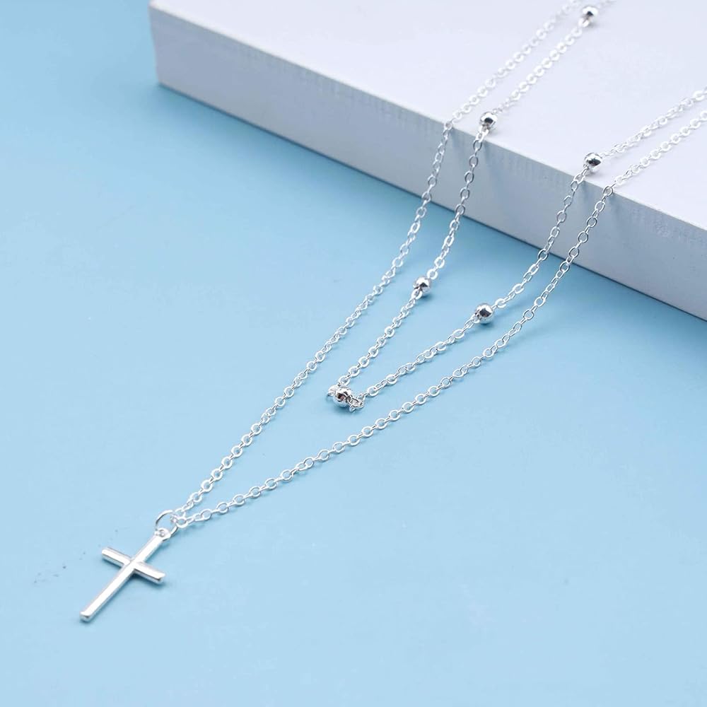 【تصميم فريد】هذه قلادة متقاطعة جميلة متعددة الطبقات، القلادة الرائعة ذات القلادة المتقاطعة تحظى بشعبية كبيرة لدى الفتيات.