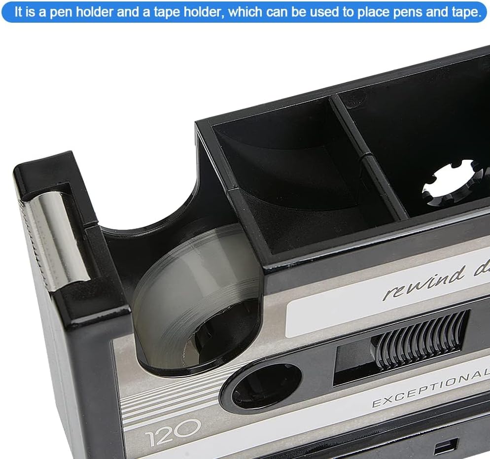 • حامل أقلام شريط الكاسيت هذا مصنوع من بلاستيك أكريلونتريل بوتادين ستايرين عالي الجودة، وهو آمن ومتين، كما يمكن أن يساعدك موزع الشريط المصنوع من الفولاذ المقاوم للصدأ على قطع الشريط بسهولة.
