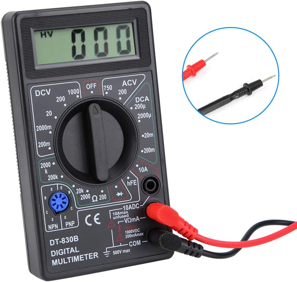 مقياس رقمي متعدد LCD، مقياس التيار الكهربائي الرقمي، مقياس متعدد، مشاكل ترانزستور مقاومة التيار المستمر (DT-830B أسود)