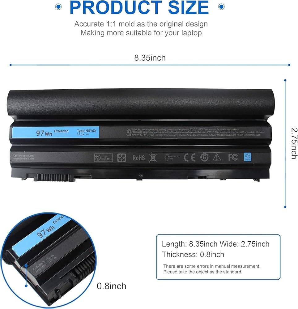 LQM® 11.1V 97Wh 9cell بطارية كمبيوتر محمول جديدة لـ Dell Latitude E6420 E6430 E6520 E6530 E5420 E5520 E5430 E5530، متوافق P/N: M5Y0X T54FJ 2P2MJ 312-1325 312-1165 PRV1Y