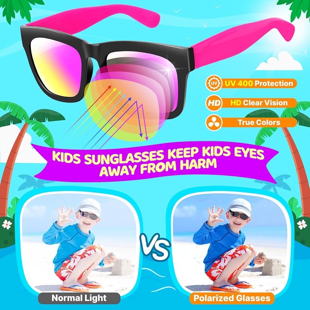 • حماية من الأشعة فوق البنفسجية 400 للعين وعدسات مستقطبة - يوفر كل زوج من النظارات الشمسية للأطفال حماية ممتازة من الأشعة فوق البنفسجية لحماية عيون الأطفال من الأشعة فوق البنفسجية فئة A وB الضارة لقضاء يوم آمن في الأنشطة الخارجية. يمكن للعدسات المستقطبة للنظارات الشمسية للأطفال أن تحافظ على رؤية واضحة ولون طبيعي، مما يمكن أن يخفف من حالة التعب في عيون طفلك. مثالية لحفلات الشاطئ الصيفية والأنشطة الخارجية. خيار رائع لمستلزمات حفلات السباحة وحقائب هدايا الحفلات لأعياد ميلاد الأطفال.