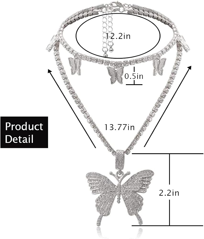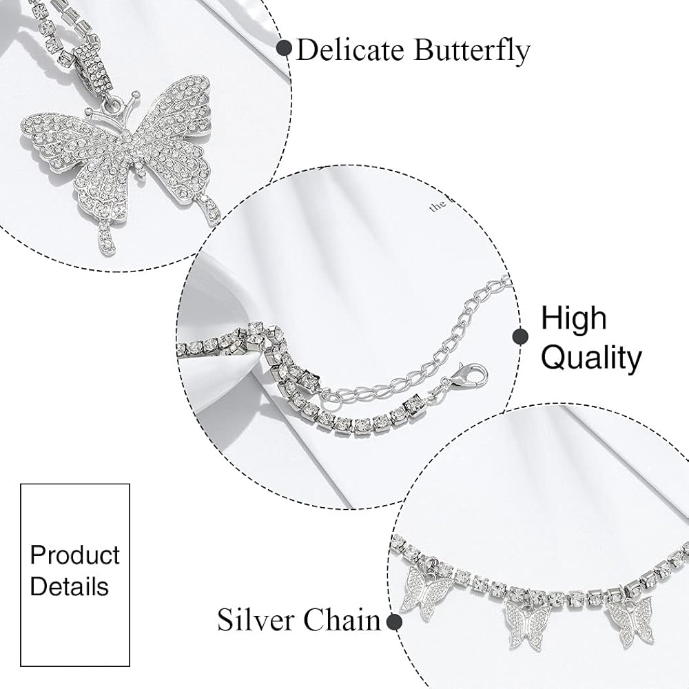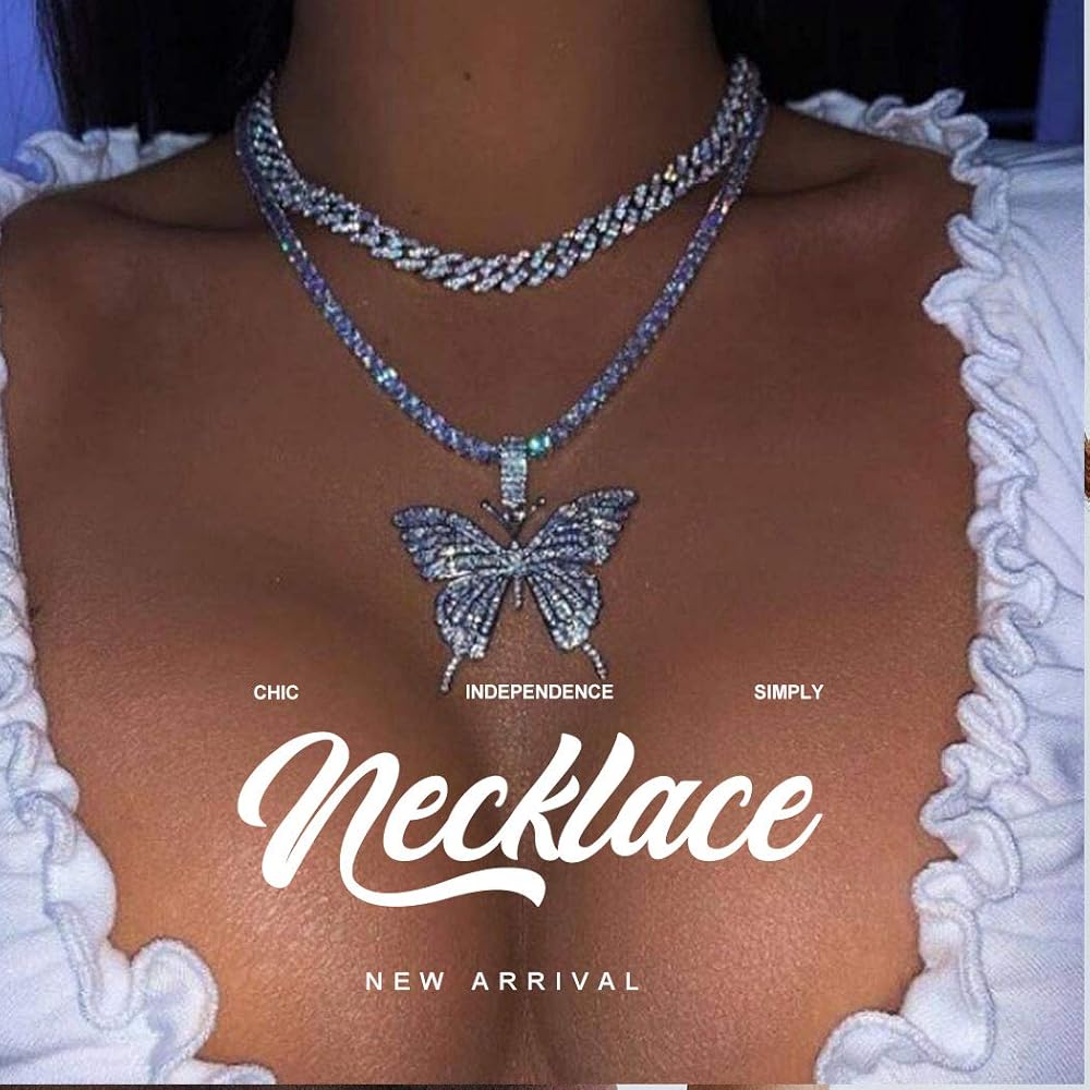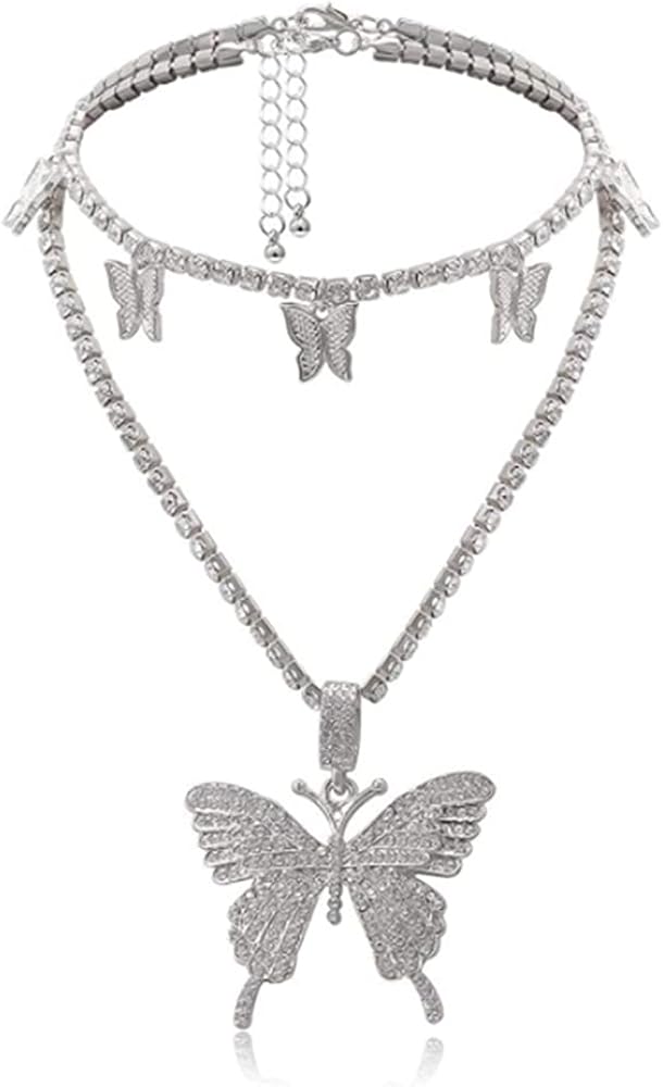 قلادة على شكل فراشة ذات طبقات مصنوعة من سبيكة عالية الجودة وحجر الراين. قلادة الفراشة اللامعة ناعمة في الارتداء ولا تحول رقبتك إلى اللون الأخضر.