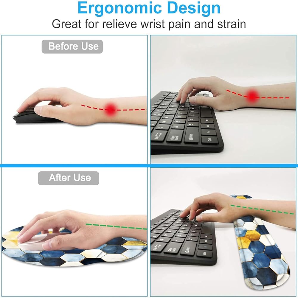 • ✅【تصميم كتابة خالٍ من التعب】: تم تصميم مجموعة مسند معصم لوحة المفاتيح ووسادة مسند معصم الماوس بشكل مريح للحفاظ على دعم المعصم جيدًا بمقدار 0.98 بوصة (25 مم) أعلى أثناء العمل والألعاب لفترات طويلة من الوقت. تخفيف تعب المعصم واليد بشكل مثالي للعمال واللاعبين والكتاب والمحررين الذين يشاركون في أعمال الكتابة الطويلة