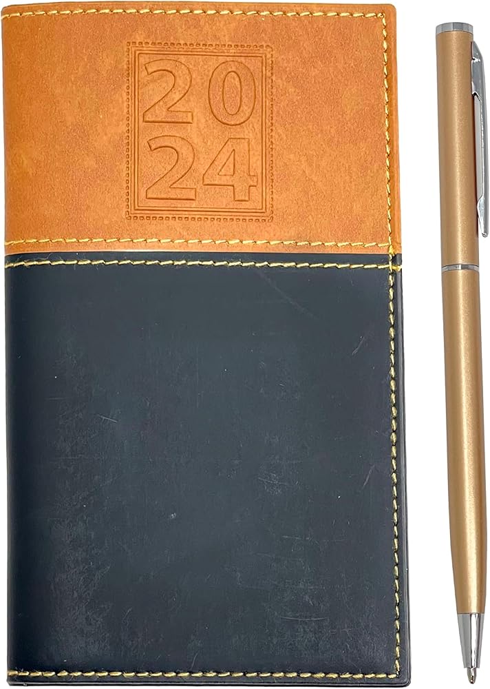 منظم تقويم الجيب الأسبوعي لعام 2024 مع قلم أعمال ذو حواف ذهبية | مفكرة بيضاء لتدوين الملاحظات - بالإضافة إلى علبة هدية | غطاء جلد ناعم بحجم محفظة صغير مقاس 6 × 3.5 مخطط جدول أعمال باللونين الأسود والأسمر (2024)