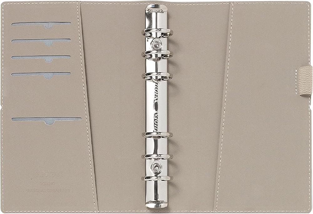 - الحجم الشخصي: 6-3/4 بوصة × 3-3/4 بوصة. متوافق مع عبوات Filofax الإضافية والملحقات المتوفرة بالحجم الشخصي.
