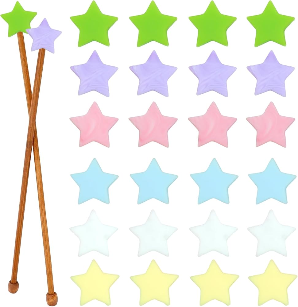 24 قطعة من سدادات إبر الحياكة النجمية، سدادات سيليكون لطيفة للحياكة على شكل نجمة ملونة، أداة حفظ الإبرة، واقيات نقاط إبرة الحياكة لملحقات مستلزمات يد الكروشيه اليدوية