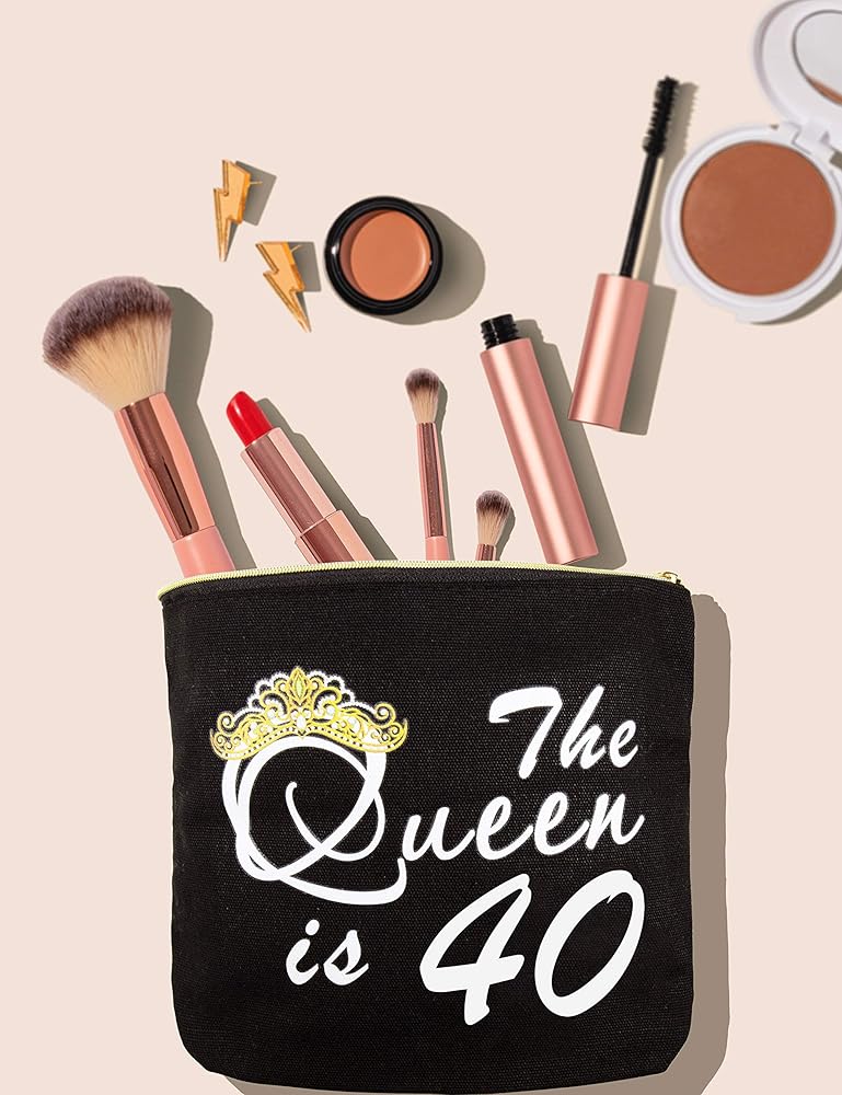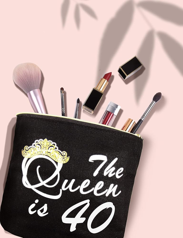 حقيبة مكياج عيد الميلاد الأربعين: حقيبة مستحضرات التجميل لعيد الميلاد الأربعين هذه مطبوعة على الوجهين مع عبارة "الملكة تبلغ 40 عامًا"، وحقيبة مكياج عيد الميلاد الأربعين مصنوعة من قماش جيد ليس له رائحة غريبة. حقيبة مستحضرات التجميل لعيد الميلاد الأربعين الخاصة بنا متينة أيضًا وليست سهلة لتتلاشى