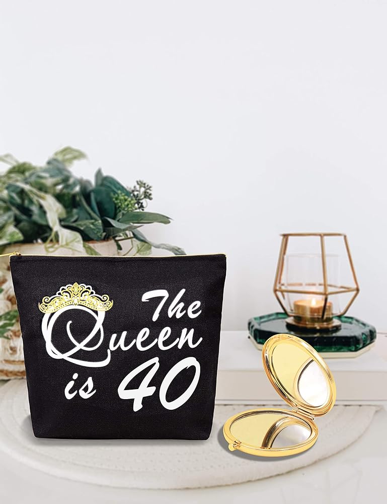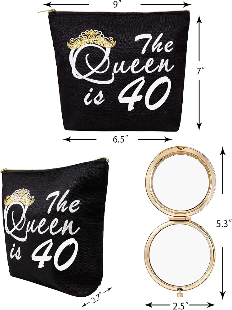 DORADREAMDEKO عيد الميلاد الأربعين، هدايا عيد الميلاد الأربعين للنساء، حقيبة مكياج عيد الميلاد الأربعين، مرآة مدمجة لعيد الميلاد الأربعين، تحول 40 هدية للنساء، هدايا عيد الميلاد الأربعين للنساء مرآة مكياج