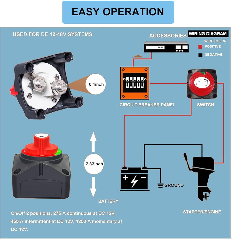مفتاح فصل البطارية الرئيسي، DC12-48V عازل طاقة مقاوم للماء مفتاح إيقاف التشغيل 275 أمبير، مفتاح عازل بطارية عالي التيار لسيارة RV ATV UTV (تشغيل/إيقاف)
