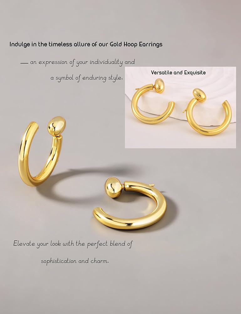 أناقة أنيقة: أقراط دائرية مطلية بالذهب عيار 14 قيراط - خفيفة الوزن، لا تسبب الحساسية، أقراط دائرية على شكل حرف C، أقراط دائرية سميكة مفتوحة هدايا مجوهرات للنساء والفتيات