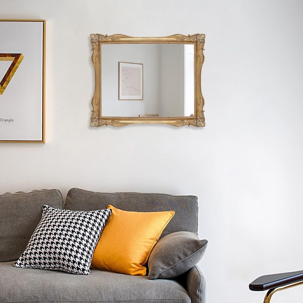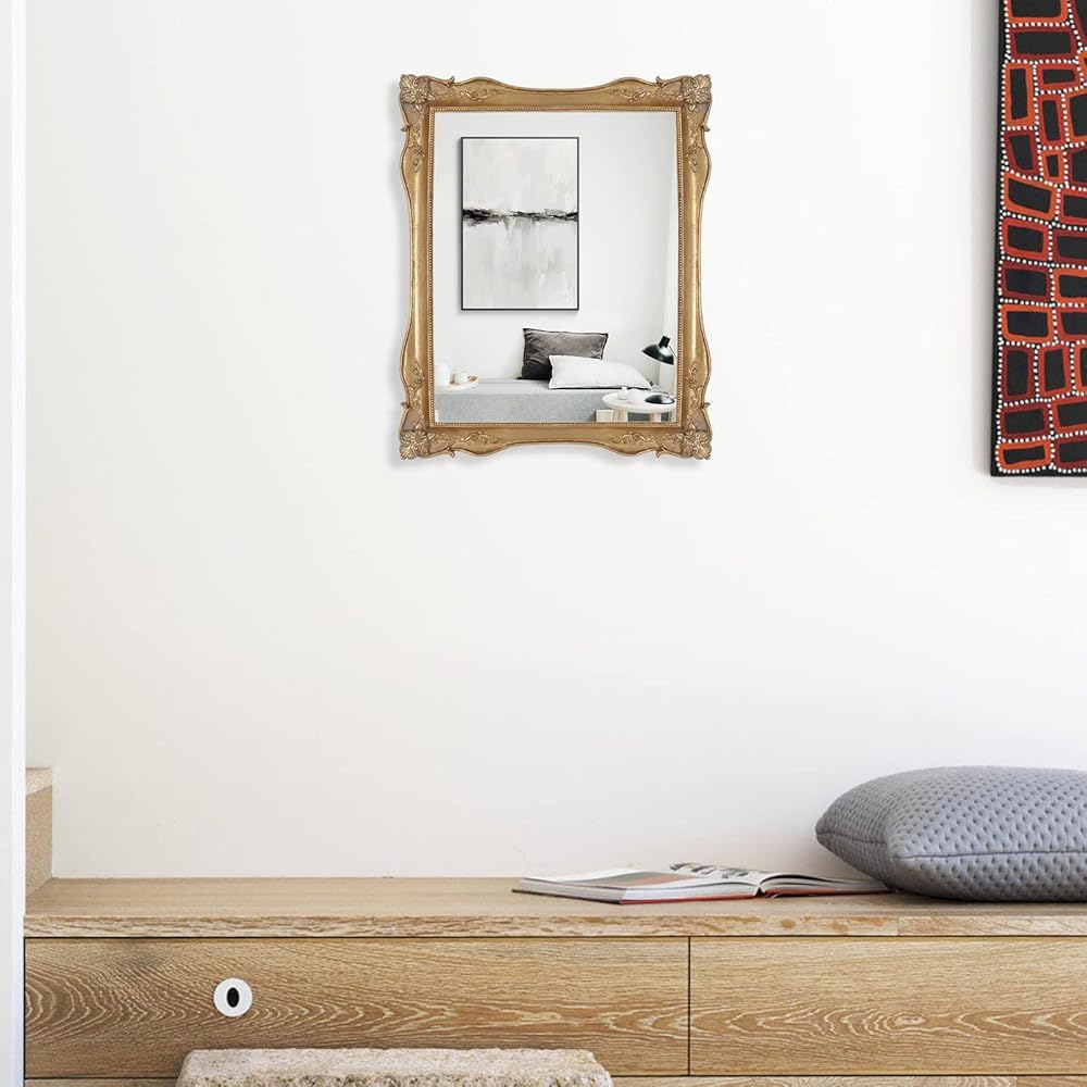 مرايا ذهبية لغرفة المعيشة وغرفة النوم، مرآة مكياج عتيقة للجدار والمكتب