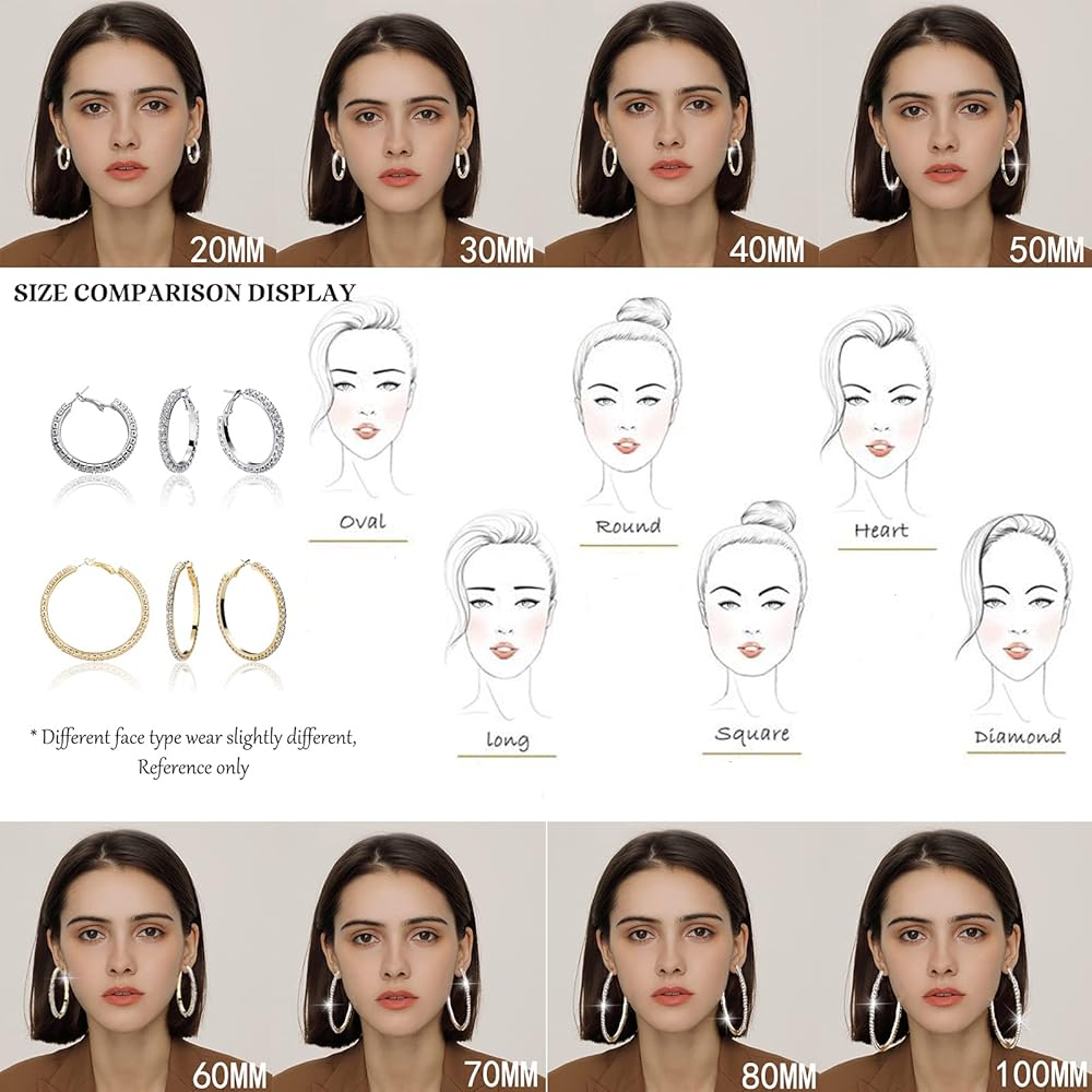 🌟أحجام الأقراط الحلقية المتعددة: يتضمن قطر عرض الطوق الكبير 20 مم/30 مم/40 مم/50 مم/60 مم/70 مم/80 مم/100 مم. يمكنك اختيار أي واحد يناسب مظهرك اليومي.
