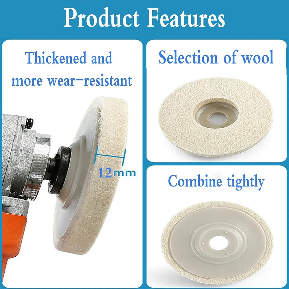 متينة وتدوم طويلاً - قرص عجلة تلميع من الصوف، عجلة تلميع خفيفة ومرنة ومقاومة للاهتراء. متين ومستقر، عند اكتمال التطبيق، لا يوجد نمط دوار متبقي. تضمن المرونة العالية والقوة العالية والتصميم السميك عمر خدمة طويل.