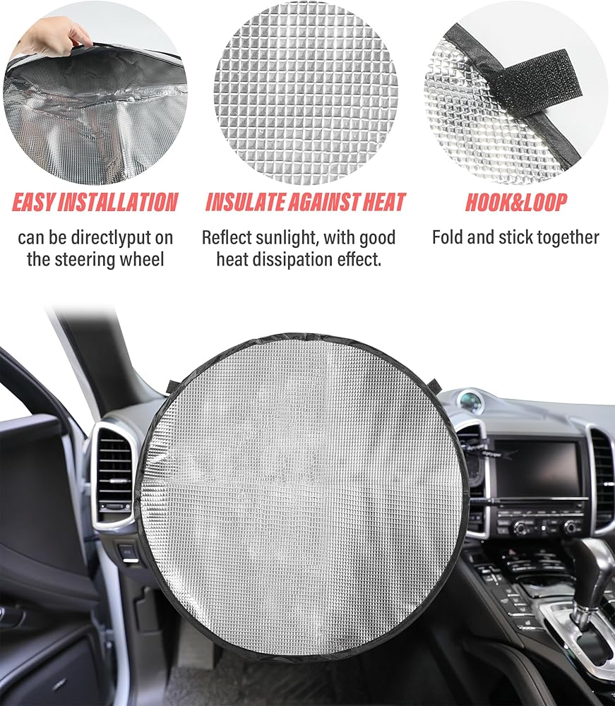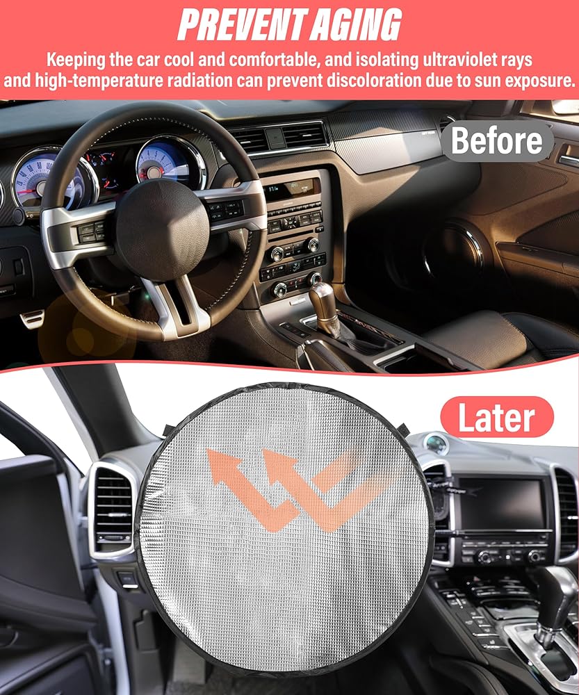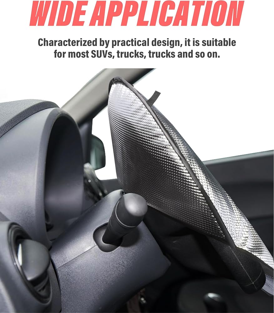 [قابل للتطبيق على نطاق واسع] واقي الشمس لعجلة القيادة مناسب لعجلات القيادة التي يبلغ قطرها أقل من 15.5 بوصة. مناسبة لجميع سيارات الدفع الرباعي والشاحنات والشاحنات الصغيرة وسيارات السيدان.