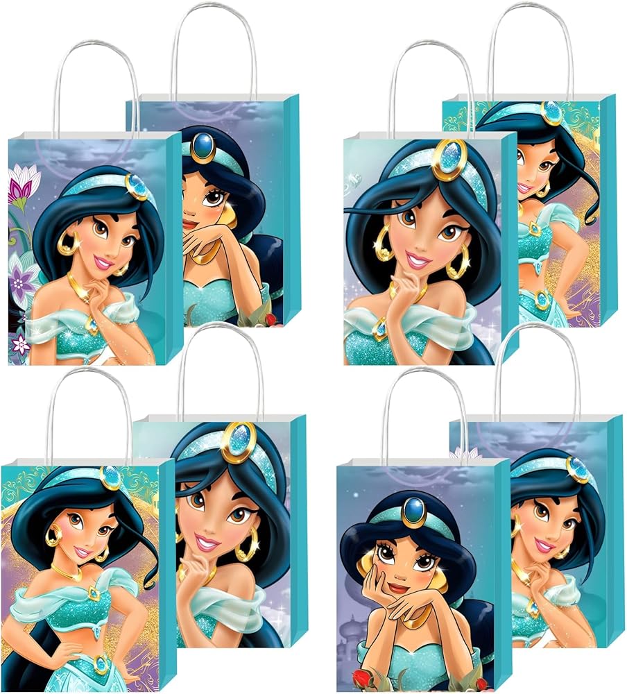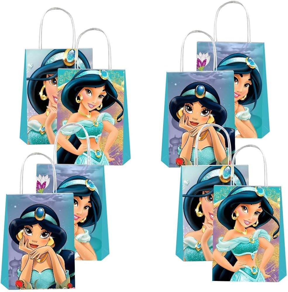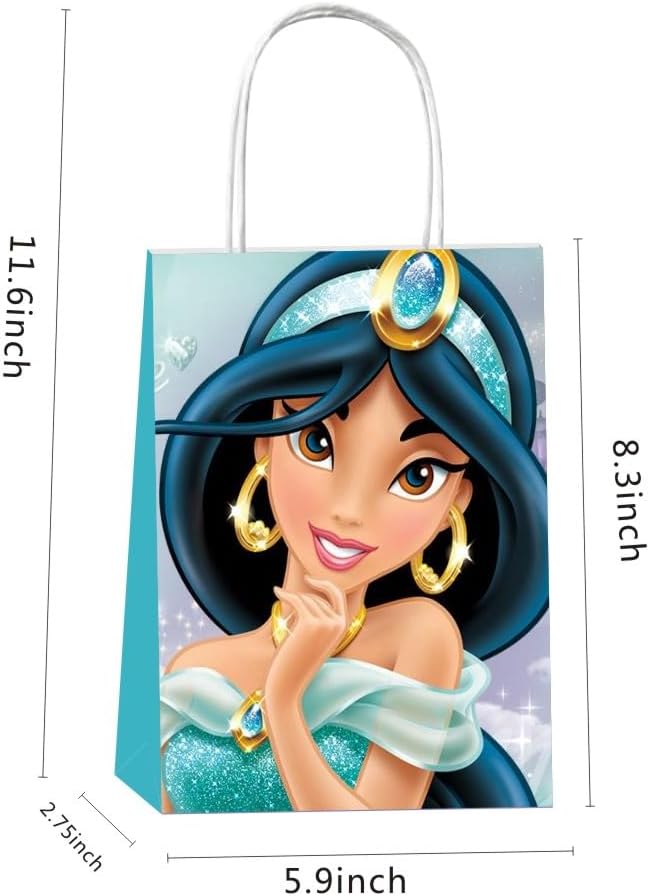 【تصميم لطيف】: مقاس حقائب هدايا الأميرة ياسمين 8.3 بوصة × 5.9 بوصة × 2.75 بوصة. جميع حقائب الهدايا متينة وتدعم العديد من الحلوى التي تضعها بالداخل.