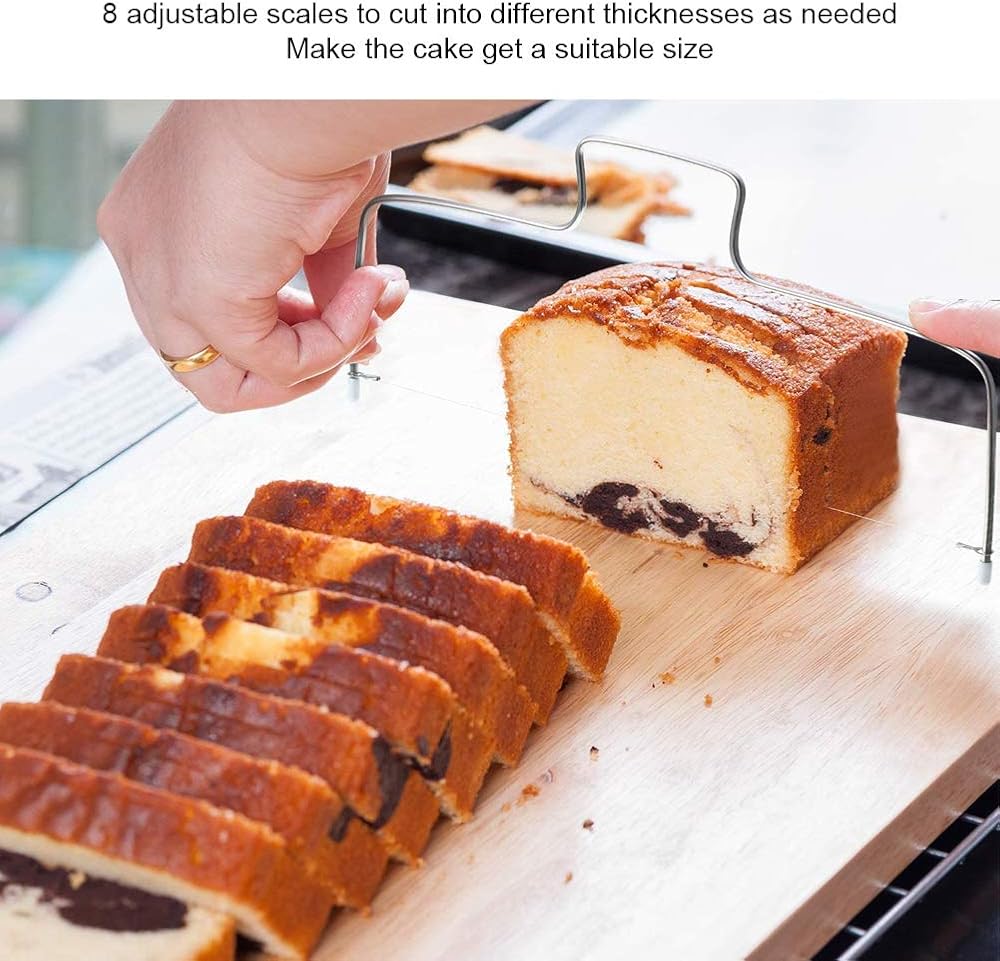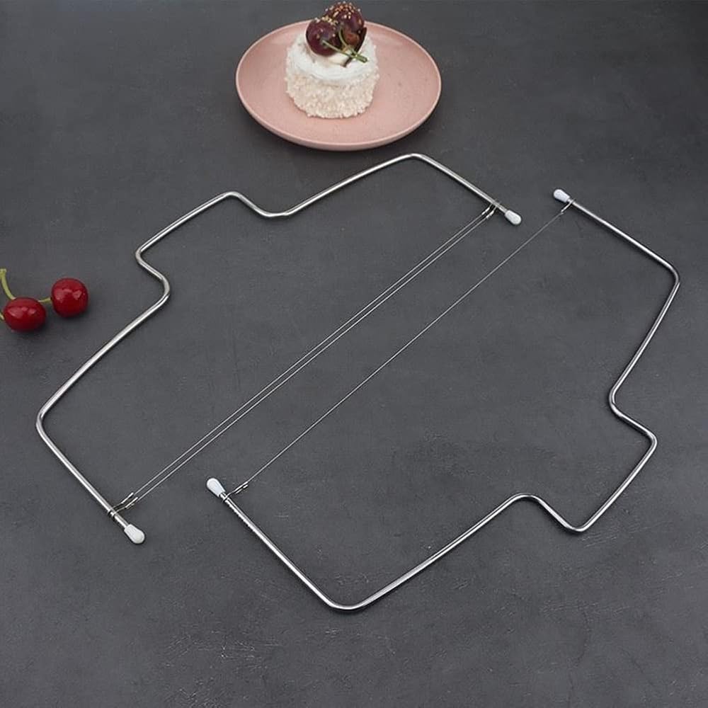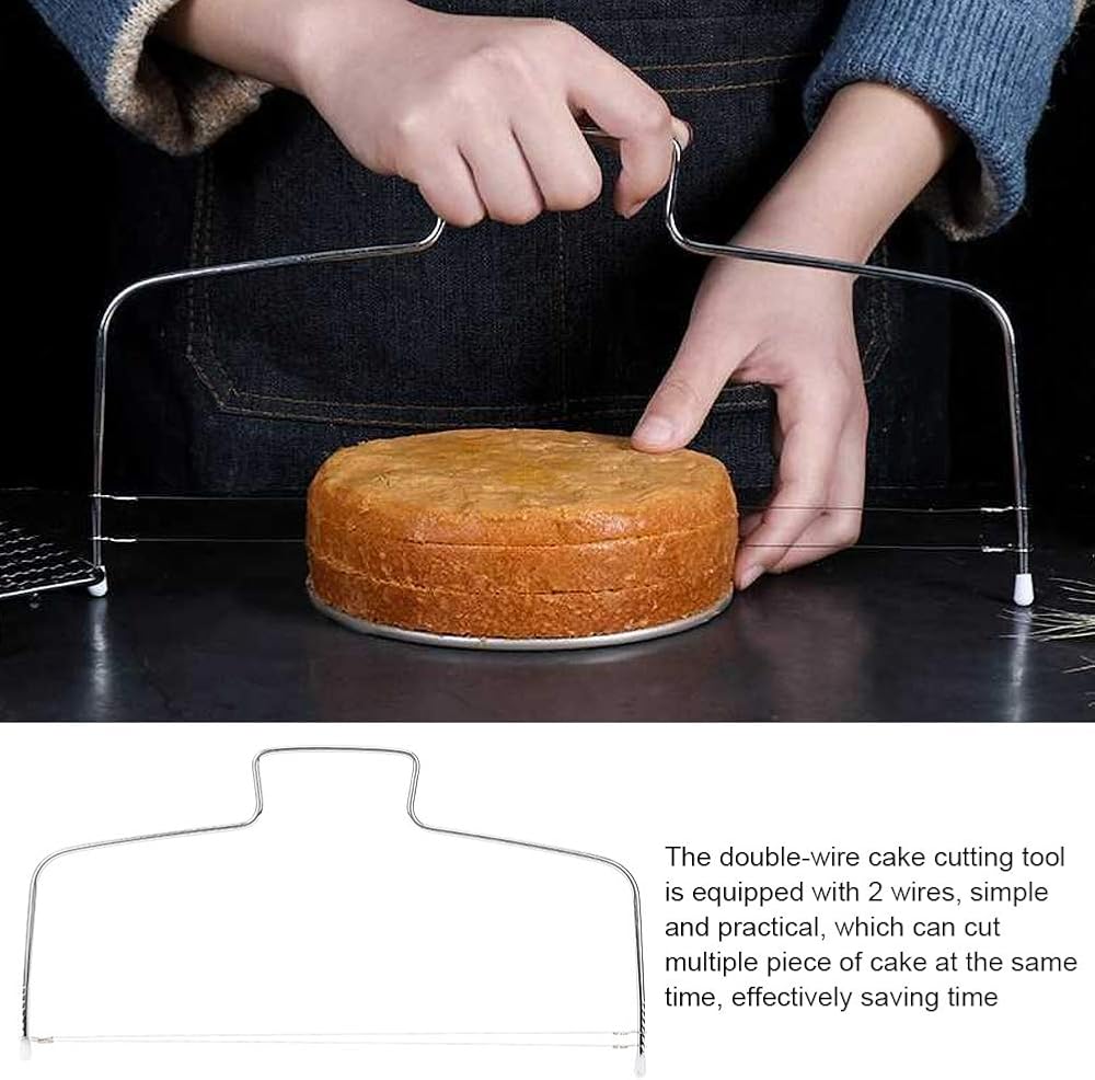 توفير الوقت والطاقة: تم تجهيز أداة قطع الكعك ذات السلك المزدوج بسلكين، بسيطة وعملية، والتي يمكنها قص قطع متعددة من الكعك في نفس الوقت، مما يوفر الوقت بشكل فعال.