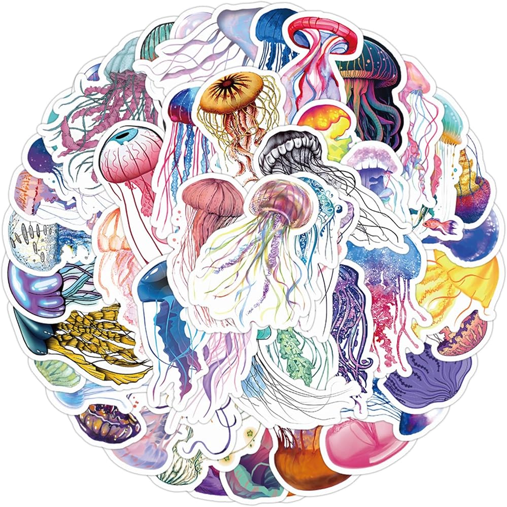 ملصقات قنديل البحر: تحتوي هذه العبوة على 50 ملصقًا مصممًا خصيصًا بحجم 1.18-3.15 بوصة. تم تصميم كل ملصق جميل وطباعته بعناية لقنديل البحر. في هذه المجموعة من الملصقات يمكنك العثور على العديد من الصور لقناديل البحر المختلفة في المحيط.