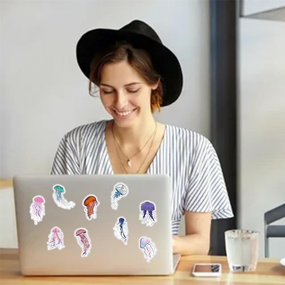 استخدامات واسعة: ملصقات قنديل البحر تزين الكمبيوتر المحمول الخاص بك، والكمبيوتر، ولوحة المفاتيح، وحافظة الهاتف، وزجاجة المياه، ودفتر القصاصات، والدفتر، والأمتعة، وملصق لوح التزلج، ولوح التزلج، والسيارة وأي شيء آخر يمكنك تخيله