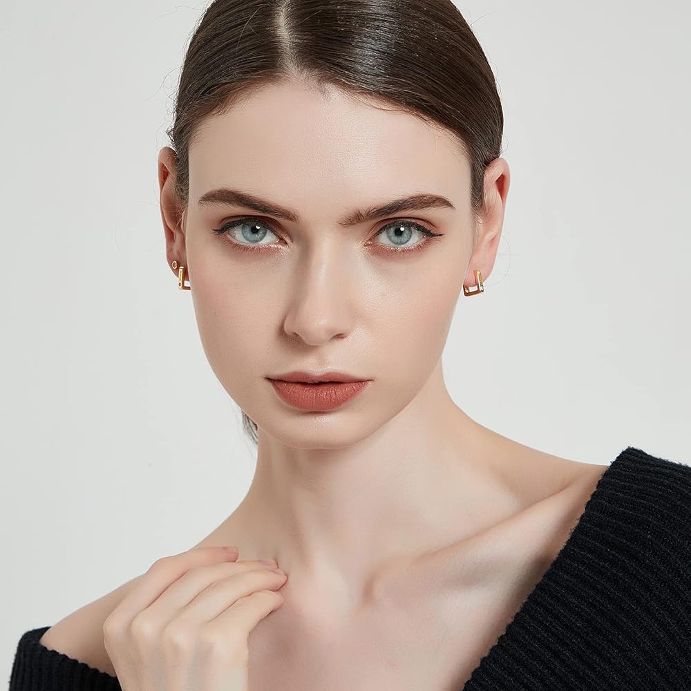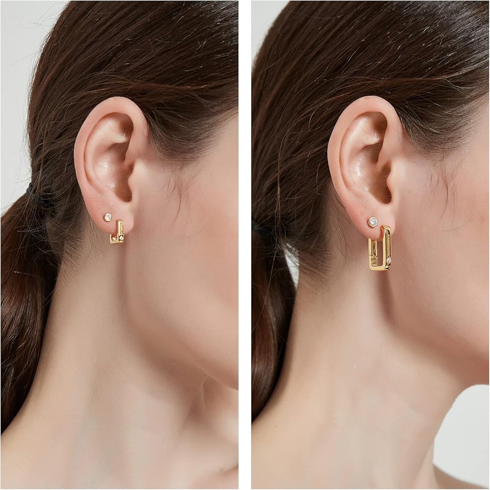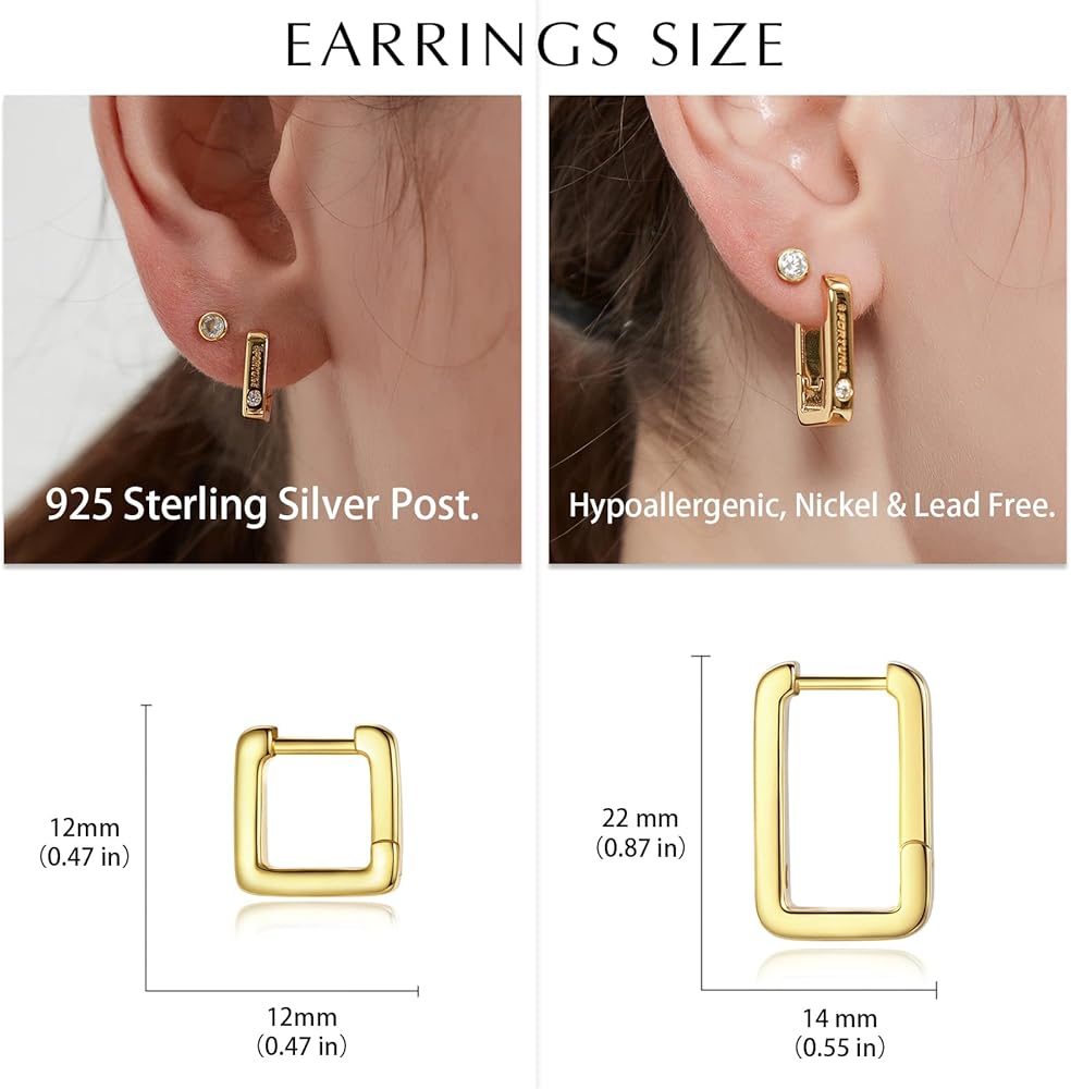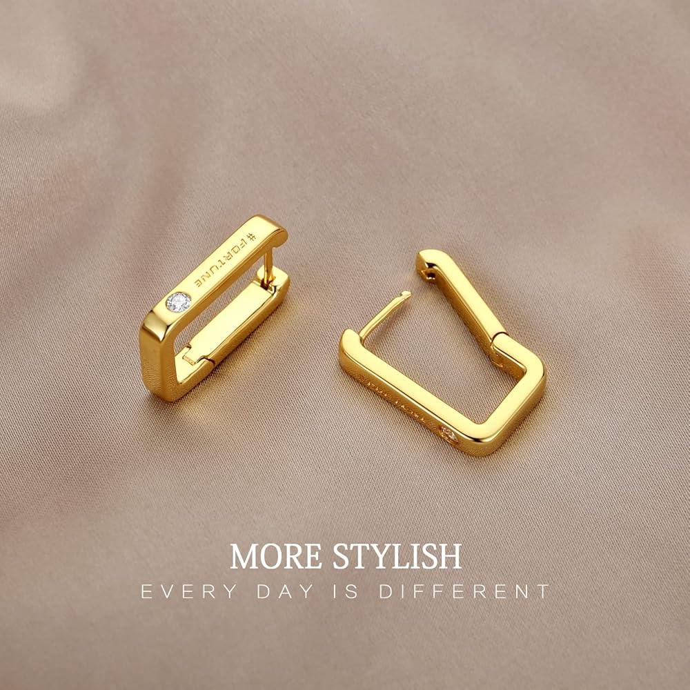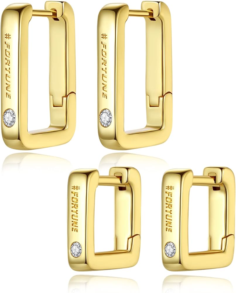 • [مجموعة أقراط دائرية ذهبية للنساء] تحتوي مجموعة الأقراط الذهبية الأنيقة هذه على زوج من الأقراط الدائرية المربعة مقاس 12 مم والأقراط الدائرية المستطيلة مقاس 14 × 22 مم. تم نقشها بـ "FORTUNE" على الجهة الأمامية ومرصعة بزركونيا مكعب 5A. هذه الأقراط الحلقية خفيفة الوزن ولها مشابك مرنة تجعل من السهل ارتداؤها وخلعها. مما يتيح لك تجربة ارتداء مريحة لاحتياجاتك اليومية.
