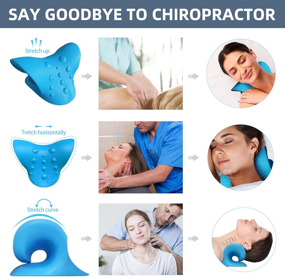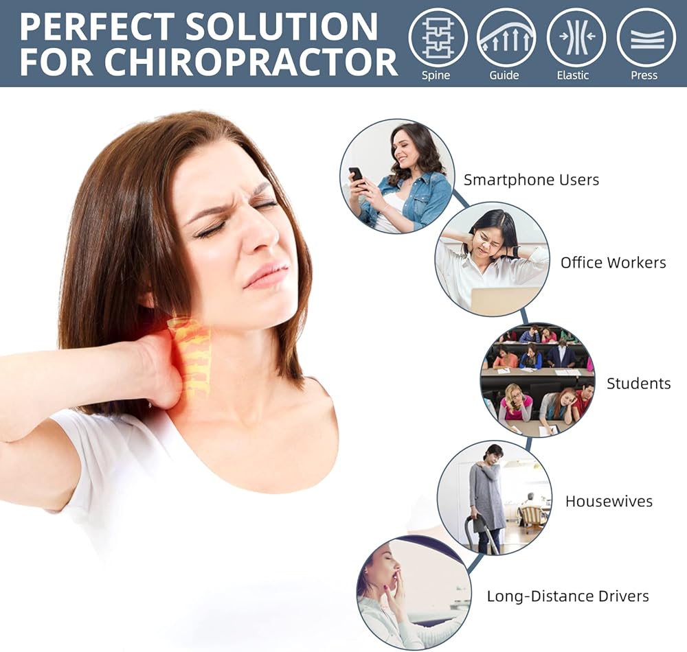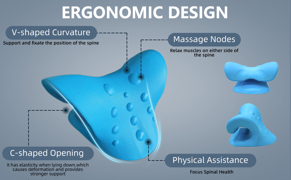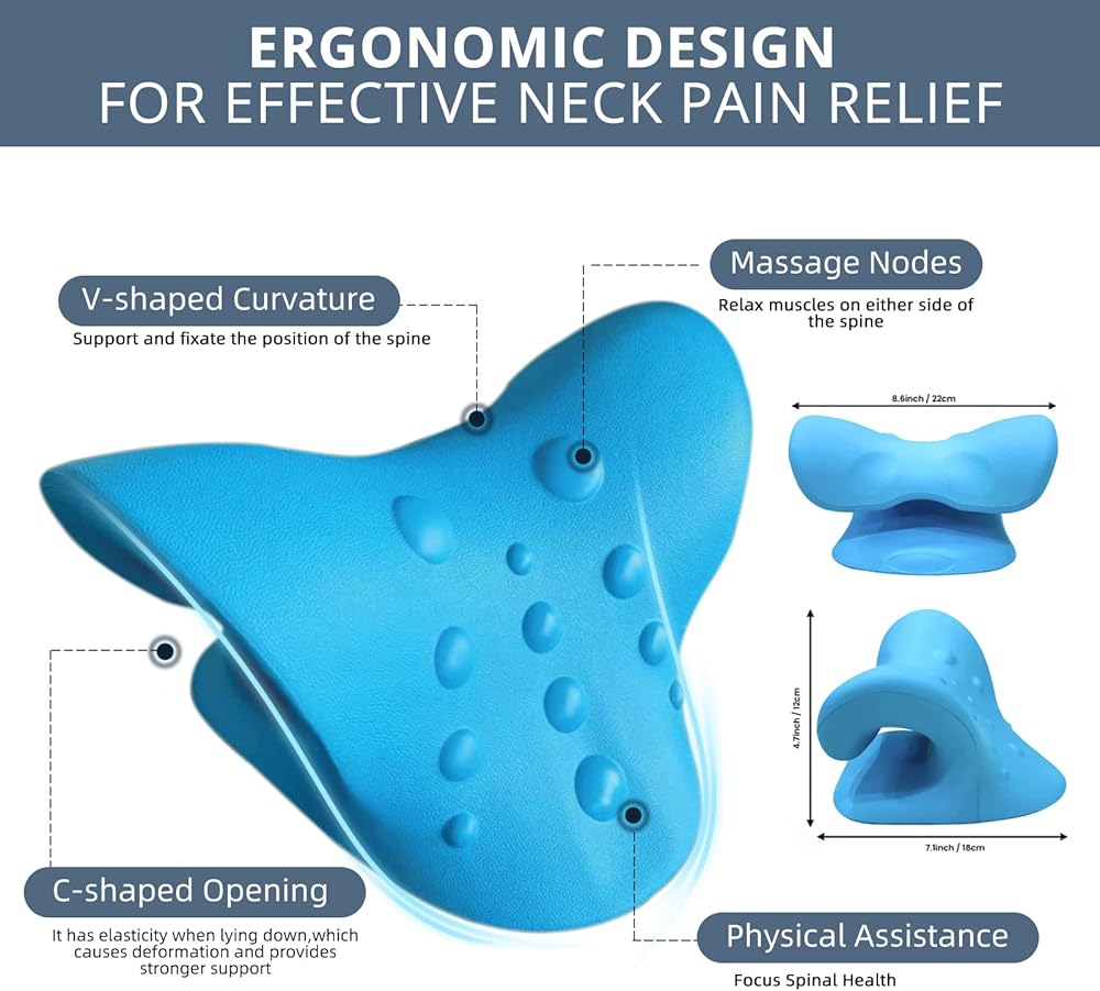 جهاز جر وتدليك الرقبة: يحتوي جهاز استرخاء عنق الرحم على عقد تدليك مدمجة فيه لتدليك لطيف يشبه أطراف الأصابع للعضلات على جانب العمود الفقري. تعمل نقاط العلاج بالإبر على استرخاء العضلات وتوفير قدر أكبر من تخفيف الألم.