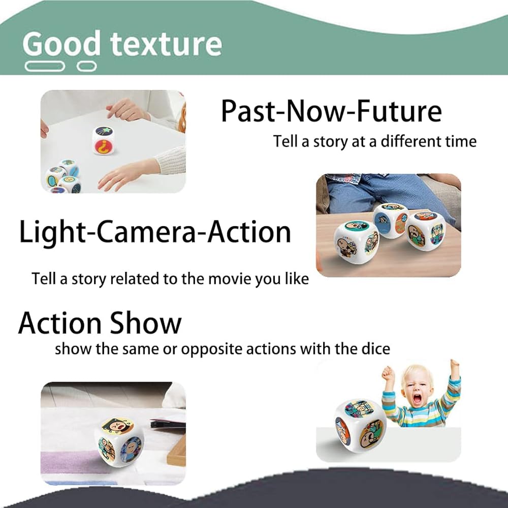 • الأصلي: 9 نردات تحتوي على 54 صورة كاملة الألوان، وسيكون لديك ملايين من مجموعات النرد وقصص لا حصر لها. تتم طباعة الصور على سطح النرد.