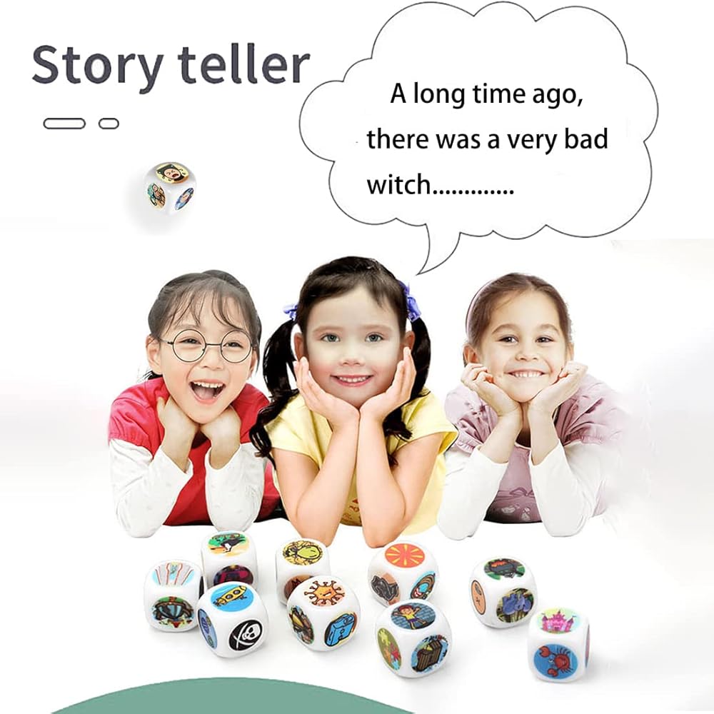 • ذات مرة: يحتوي كل مكعب قصة ضخم مقاس 1 بوصة على 6 صور أو أيقونات، بإجمالي 54 صورة فريدة - قم بلف جميع المكعبات التسعة لإنشاء 9 صور عشوائية واختر قصة تبدأ بـ "ذات مرة..." ويستخدم جميع العناصر التسعة