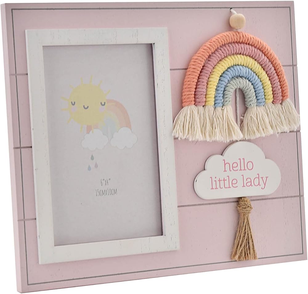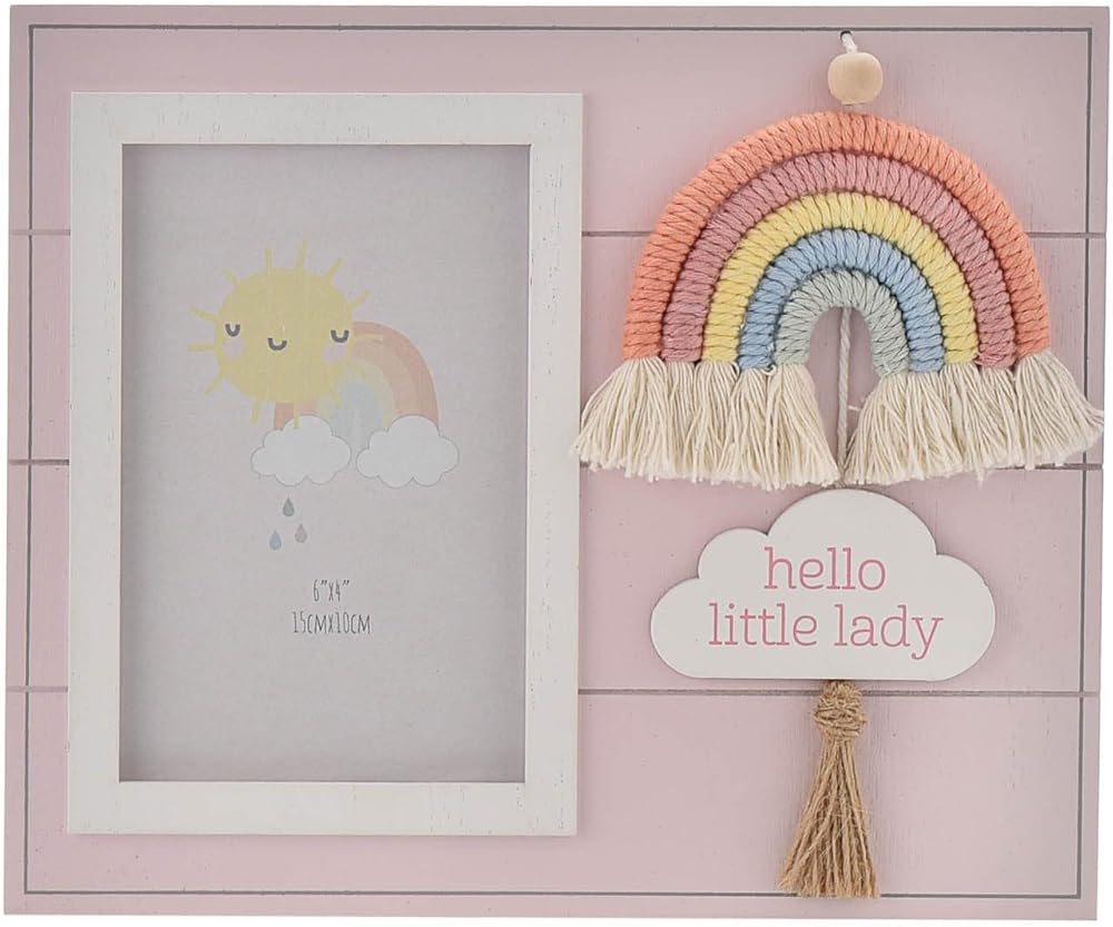 إطار صور خشبي من بيتي شيري مع سيدة صغيرة بألوان قوس قزح من مكرامية