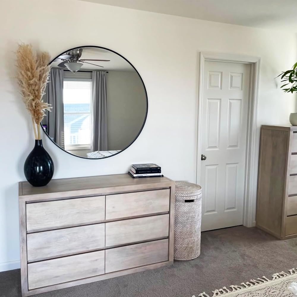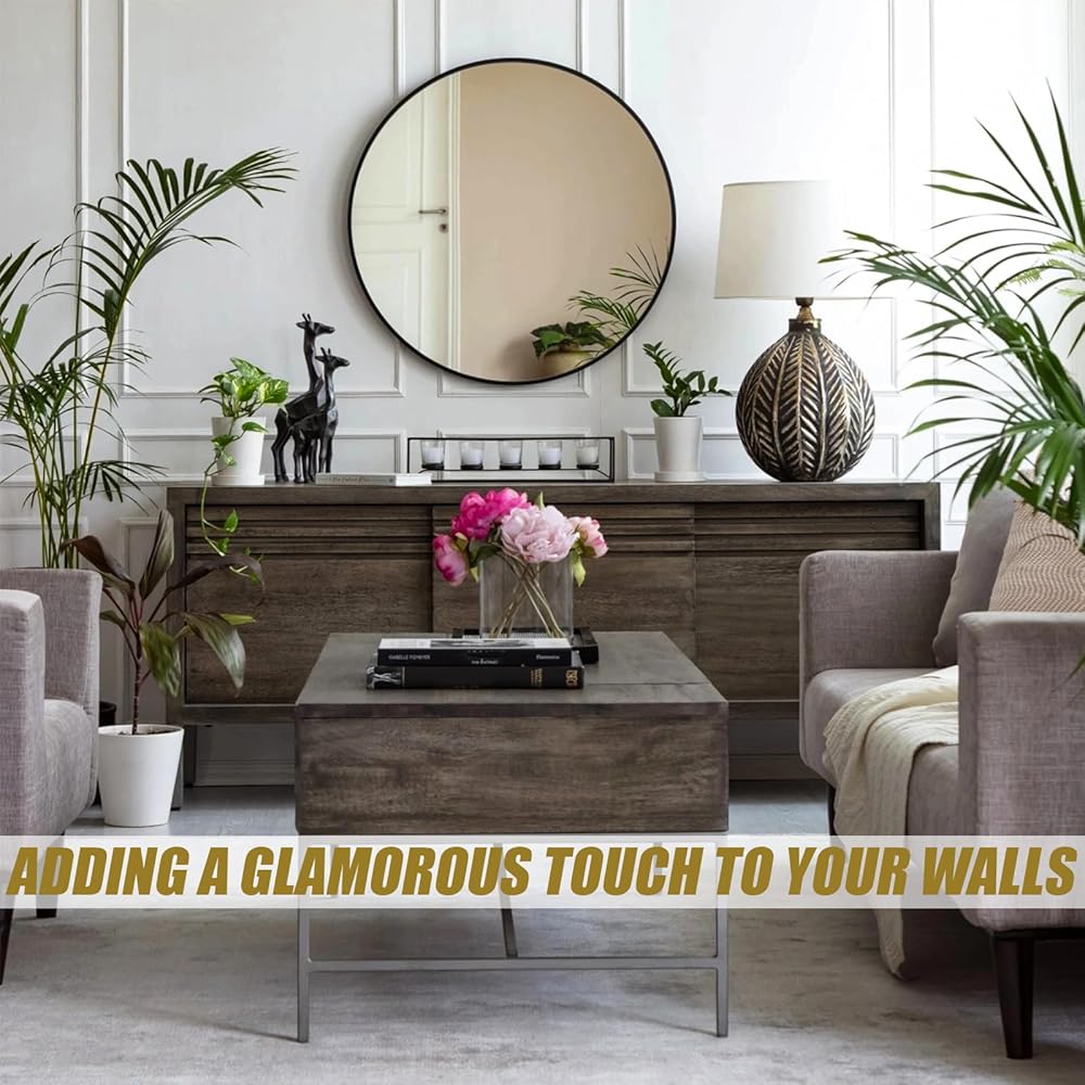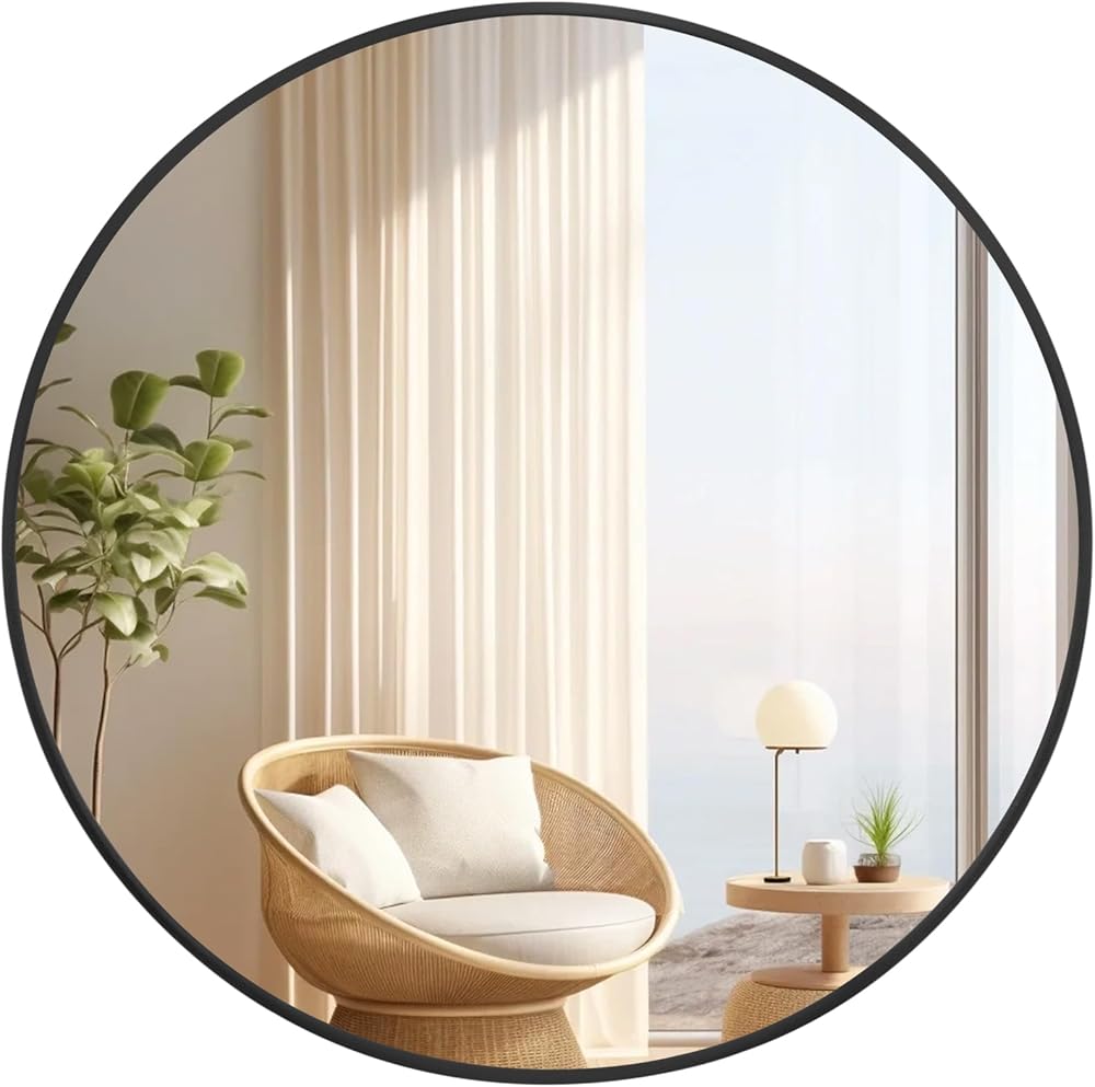 【مرايا مستديرة عالية الجودة】هذه المرآة المستديرة السوداء مقاس 60.96 سم مصنوعة من زجاج عالي الوضوح، وتتميز هذه المرآة بسطح أملس ومسطح مع انعكاس عالي، مما يوفر صورًا واضحة وخالية من التشويه. يضمن رؤية مشرقة وحقيقية، فهو يوسع غرفتك بصريًا بينما يعمل كلوحة فنية جدارية عملية.