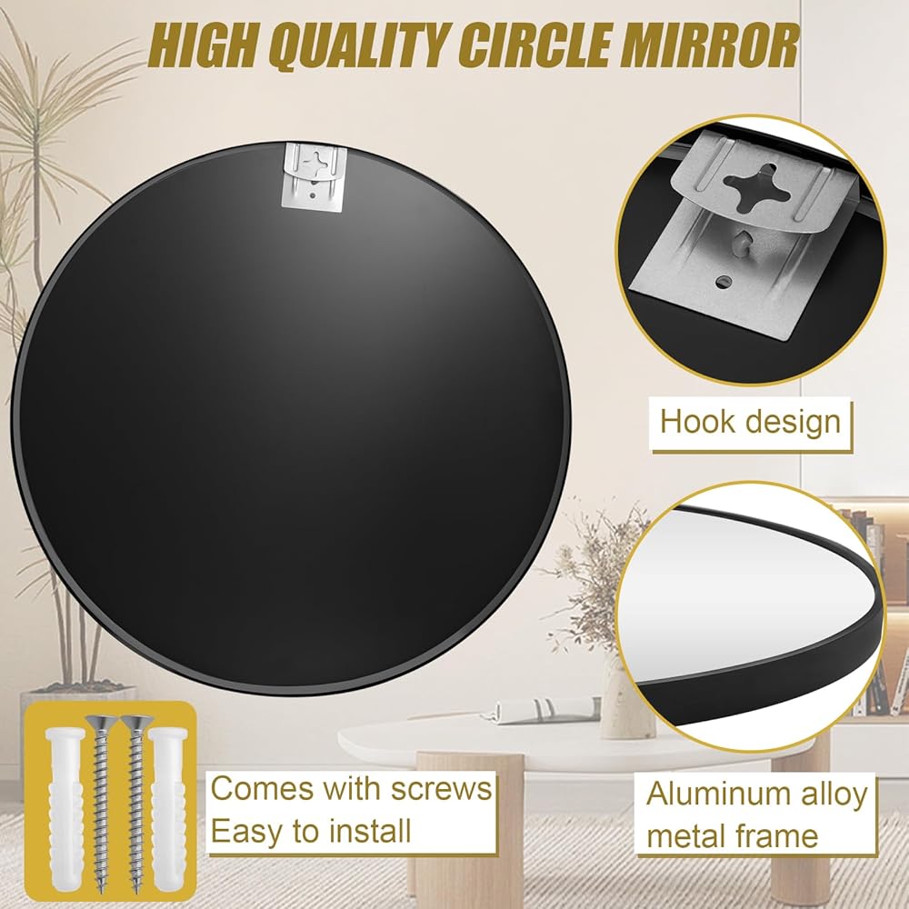 【سهلة التركيب】توفر المرآة السوداء المستديرة مقاس 60.96 سم طريقة بسيطة وسريعة لتعليقها. خطاف المرآة ذات الدائرة السوداء مثبت مسبقًا، ويتم تضمين البراغي، مما يجعل من السهل عليك تركيبها على الحائط.