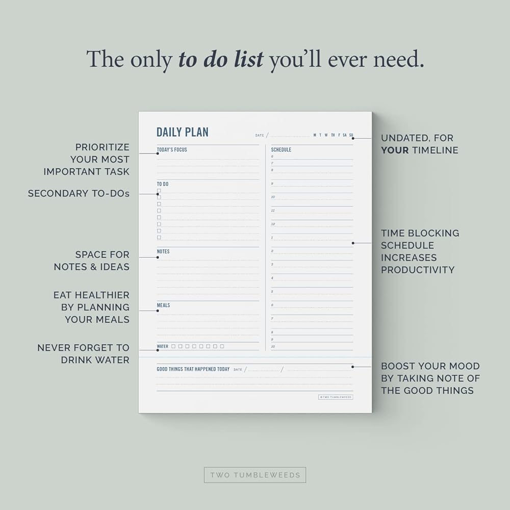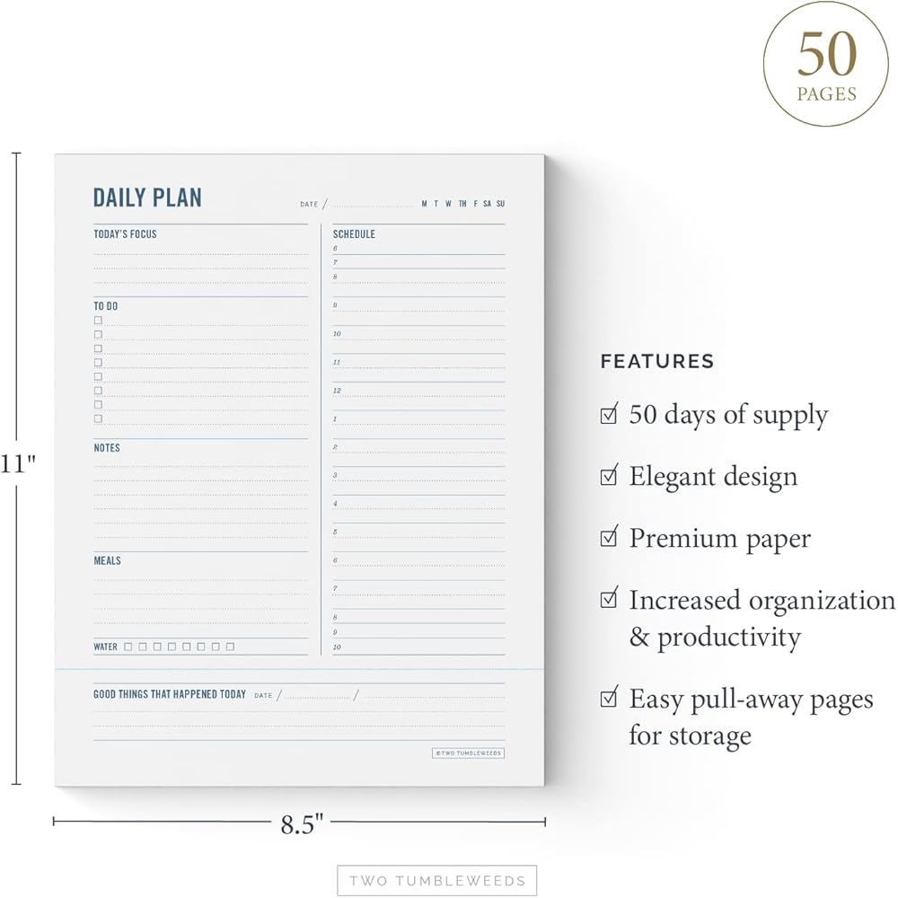خطط بشكل أكثر ذكاءً وأقل إجهادًا: تحتوي مفكرة التخطيط اليومية لدينا على 50 ورقة غير مؤرخة لكل لوحة لمساعدتك في الحفاظ على ملاحظاتك منظمة في مكان واحد. تتبع المشاريع والمهام المهمة وحظر الوقت والأهداف باستخدام مخططنا.