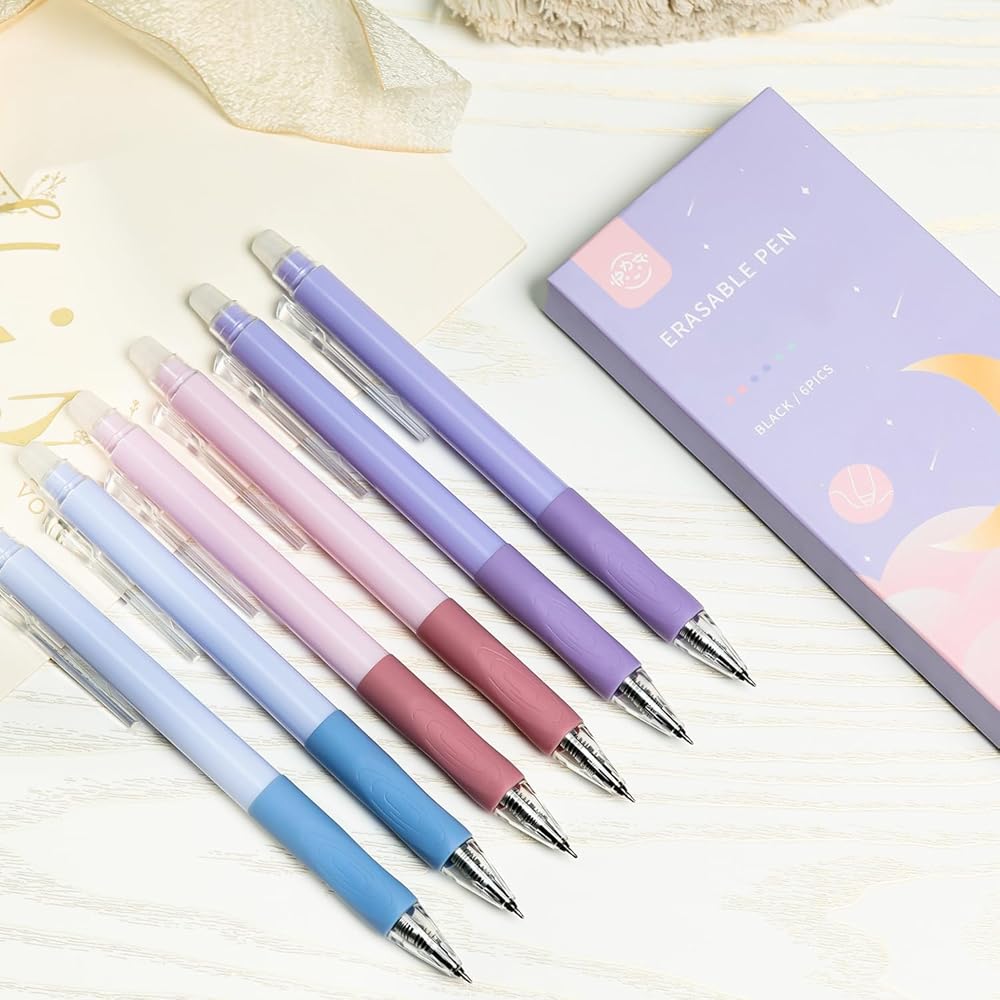 【أقلام قابلة للمسح من سلسلة عالية الجودة】حبر فائق الحساسية للحرارة وقبضة مطاطية ناعمة تجعل الأقلام تكتب بسلاسة ومتينة! أقلام رائعة قابلة للمسح للتلوين ورسم الأطفال وتسجيل القصاصات والرسم والكتابة والإبداع بطريقة ممتعة وماهرة. لكن لا يُنصح باستخدامه في المستندات القانونية أو الرسمية.