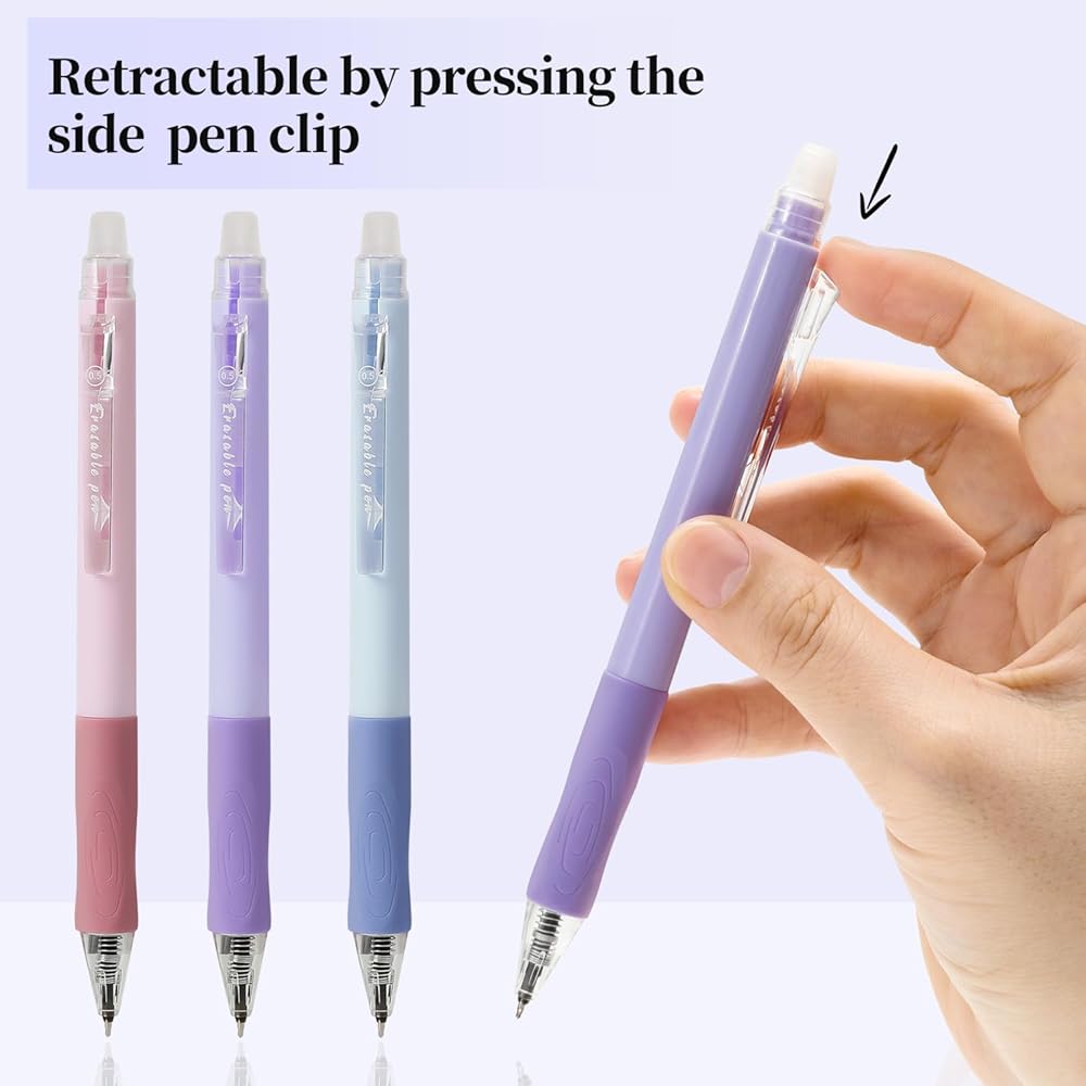 【أقلام جل قابلة للمسح وقابلة للسحب】تجمع هذه الأقلام بين سهولة القلم القابل للسحب مع حبر جل حساس للحرارة قابل للمسح. الجزء العلوي من القلم عبارة عن ممحاة يمكن سحبها بالضغط على مشبك القلم الجانبي. يكتبون مثل أقلام الجل ويمسحون مثل أقلام الرصاص. لا يوجد تآكل أو تمزق حتى تتمكن من المسح وإعادة الكتابة حتى يصبح الأمر صحيحًا دون إتلاف الصفحة.