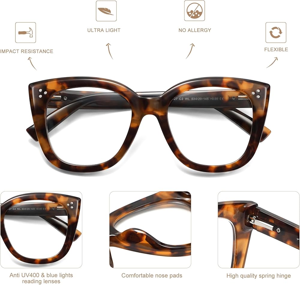 عدسات قراءة مضادة للضوء الأزرق - يمكن للعدسات المضادة للضوء الأزرق أن تمنع أضرار الضوء الأزرق الضارة الناتجة عن الأجهزة الرقمية وتحميك من الشعور بالدوار بعد ارتدائها طوال اليوم في المكتب.