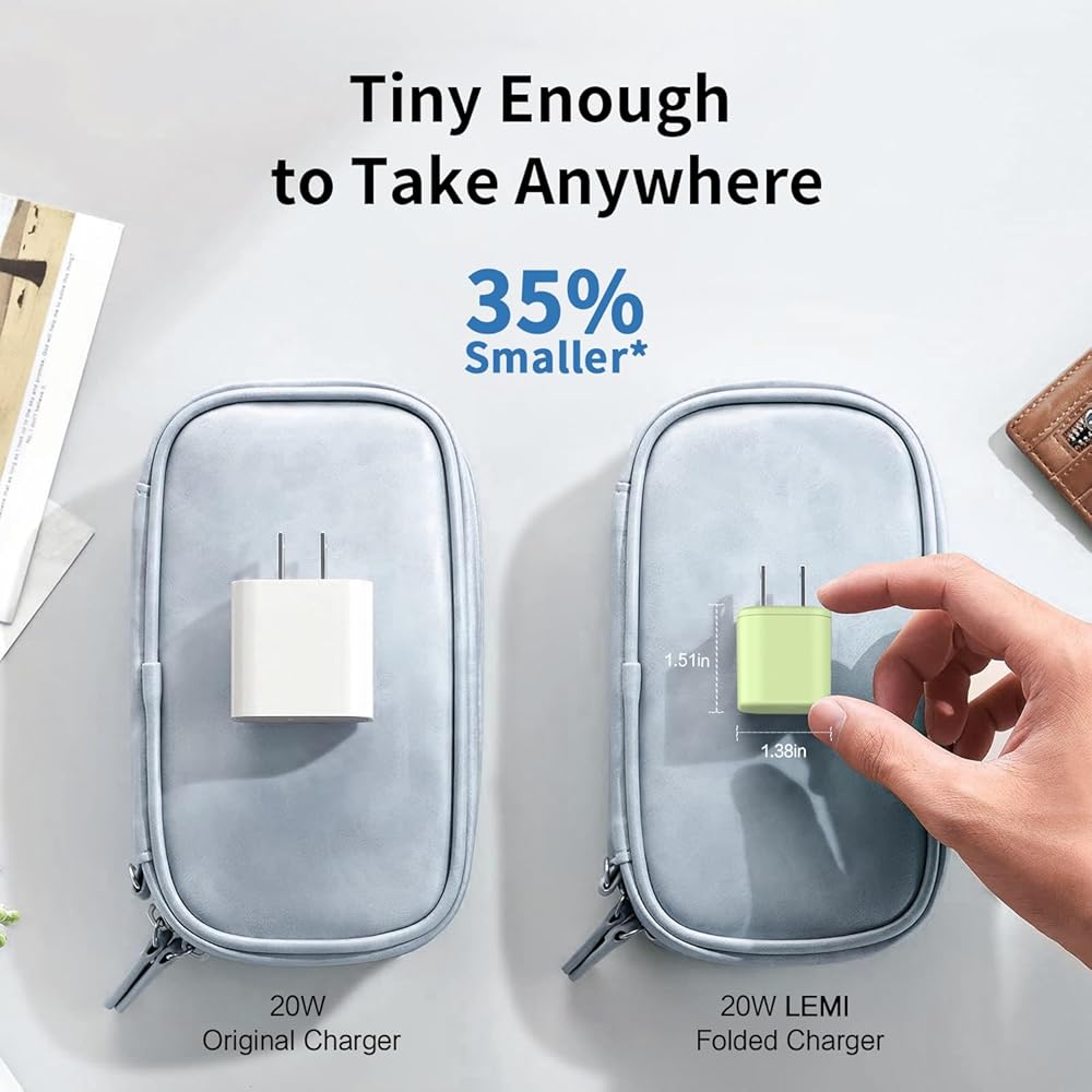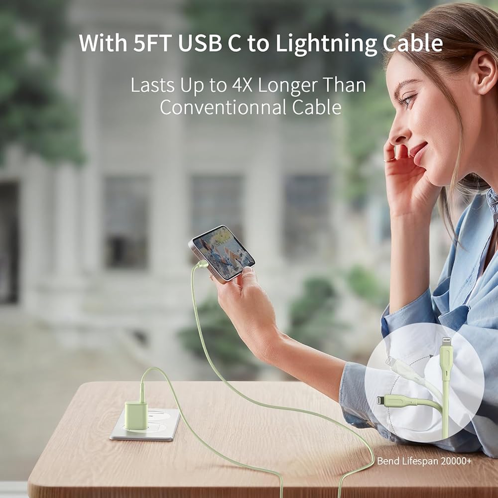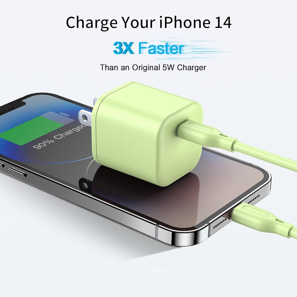 شاحن USB C iPhone سريع 20 وات، كتلة شحن قابلة للطي GaN، قابس محول طاقة محمول مع كابل USB C إلى Lightning [معتمد من Apple MFi] شاحن سلك 5FT لهاتف iPhone 14/13/12/11 Pro Max Mini، iPad
