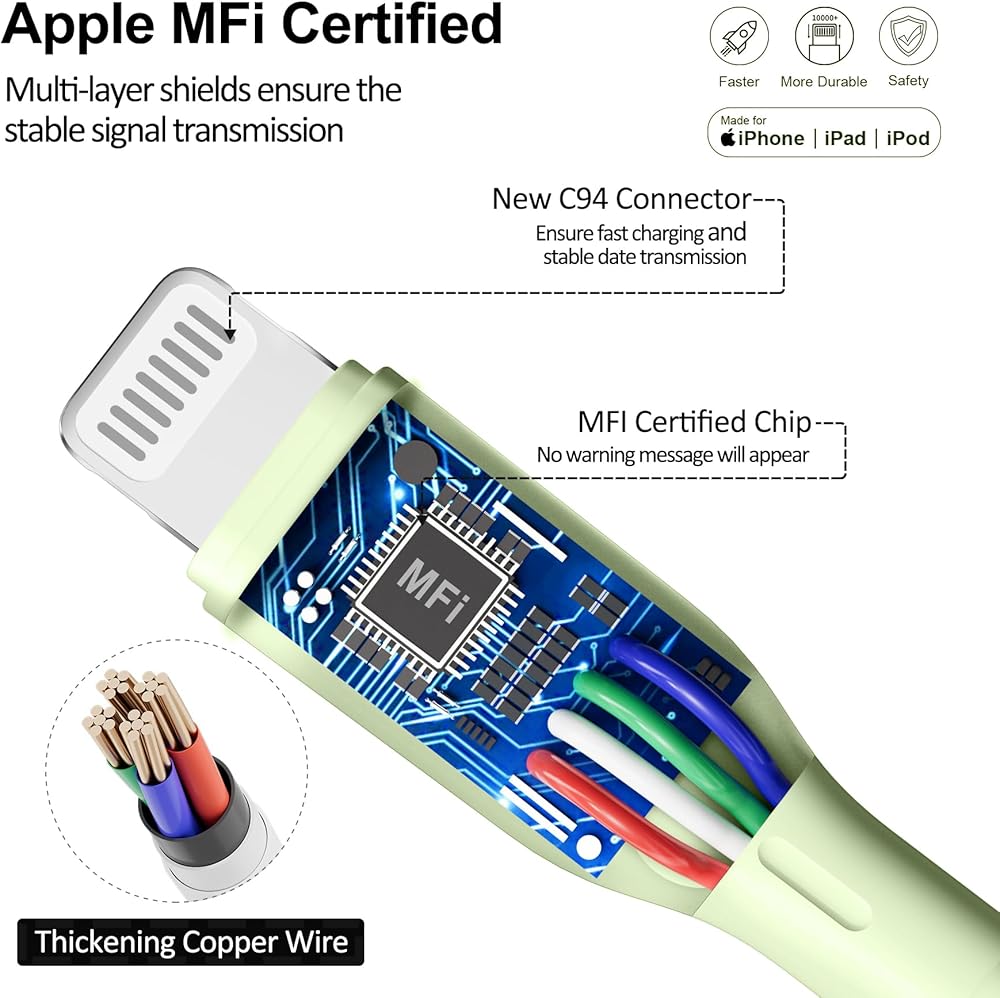 • [3 أسلاك شحن سريعة]: يضمن كابل iPhone Lightning المعتمد من MFi التوافق مع سلسلة Apple iPhone. شحن أسرع 3 مرات من الكابل العادي، يشحن هاتف iPhone 13 الخاص بك بنسبة 100% في 60 دقيقة. سلك السيليكون الناعم بطول 5 أقدام / 1.5 متر لمجموعة الشاحن هذه هو كابل USB-C إلى Lightning فقط لسلسلة Apple، نقل بيانات عالي السرعة يصل إلى 480 ميجابت في الثانية لتوصيل جهازين بسرعة ونقل الموسيقى ومقاطع الفيديو والأفلام والصور.