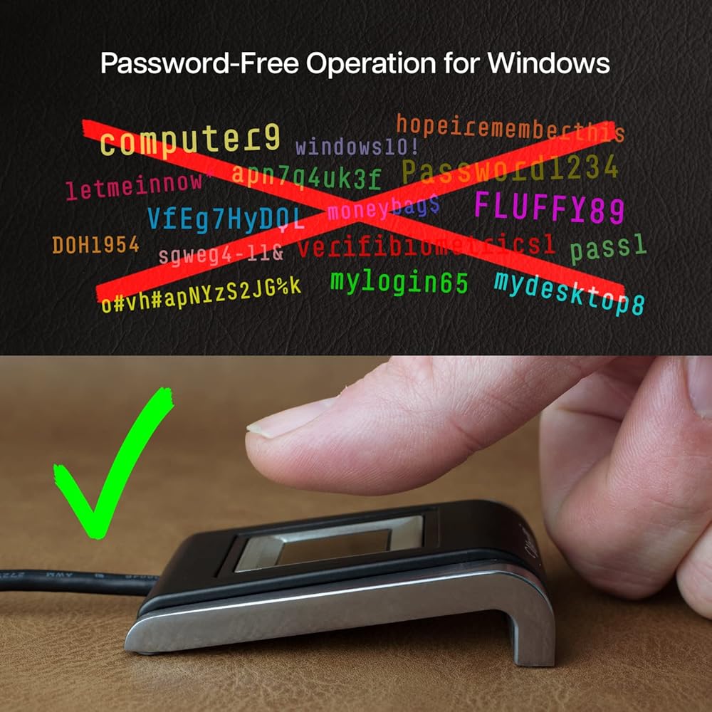 التوصيل والتشغيل: ما عليك سوى توصيل قارئ بصمات الأصابع USB المدمج بجهاز الكمبيوتر المحمول أو سطح المكتب الذي يعمل بنظام Windows للحصول على تجربة تسجيل دخول بيومترية فورية دون أي برامج إضافية.